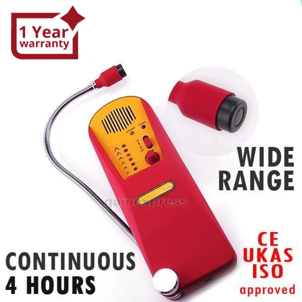 This Professional Wide Range Combustible Gas Leak Detector for Industrial uses, HVAC, plumbing and plant maintenance is an extremely useful tool in any environment where coal gases, hexane, propane, methane, natural gas, fuel oil, ethane, Butane, pentane, isopropyl alcohol, halogenation hydrocarbon, (Methanol, Ethanol, Butanol) aether, ketone (butone, protone), Hydrogen, toluene, and other compounds, (gasoline, industrial solvent, lacquer, refrigerant, sulfur dioxide, ammonia, sulfured hydrogen, acetic acid, etc) and many other explosive gases may be present. This gas detector features a quick response, audible & visual indication, auto fast warm-up, adjustable sensitivity, and can continuously operate up to 5 hours.