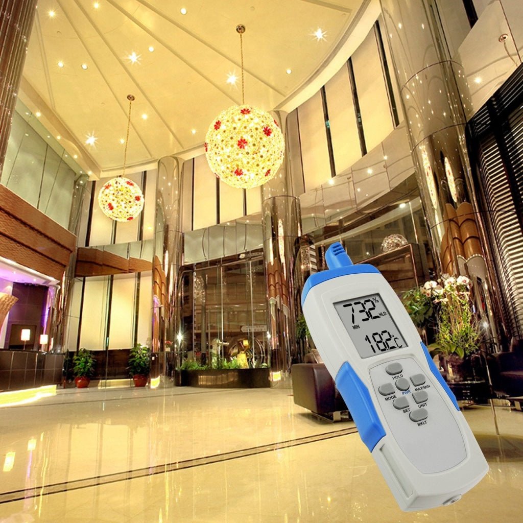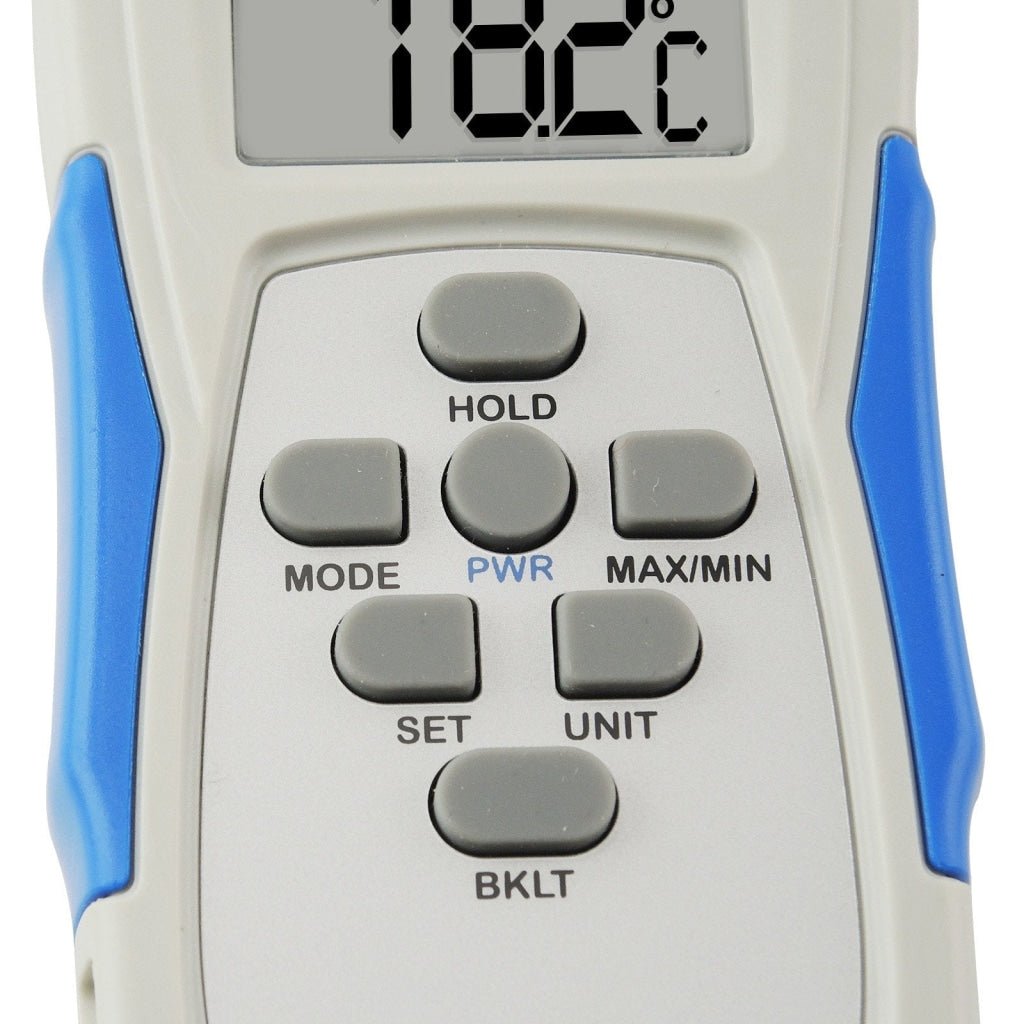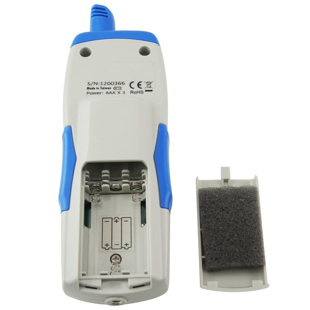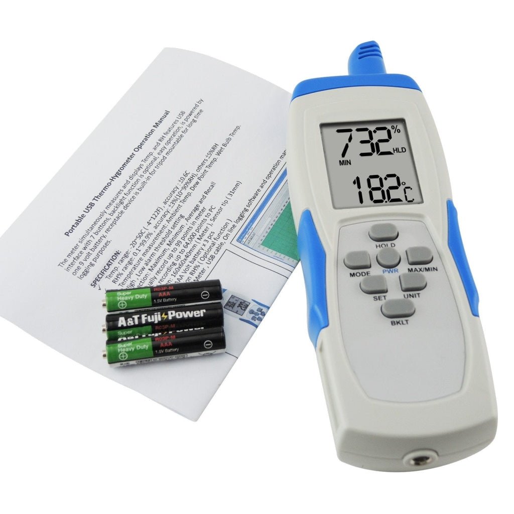 This Portable Thermo-hygrometer meter simultaneously measures and displays Temperature and Relative Humidity (RH%)in seconds.Thermo hygrometers are useful for measurements of humidity. Humidity is a representation of the concentration of water vapour in the air where the value is shown as a percent. Thermo hygrometers have sensors which measure humidity of the air and temperature of the air that can show minimum, maximum and current values of humidity with memory of 99 points and its easy operated meter powered by three (AAA) 1.5V batteries.