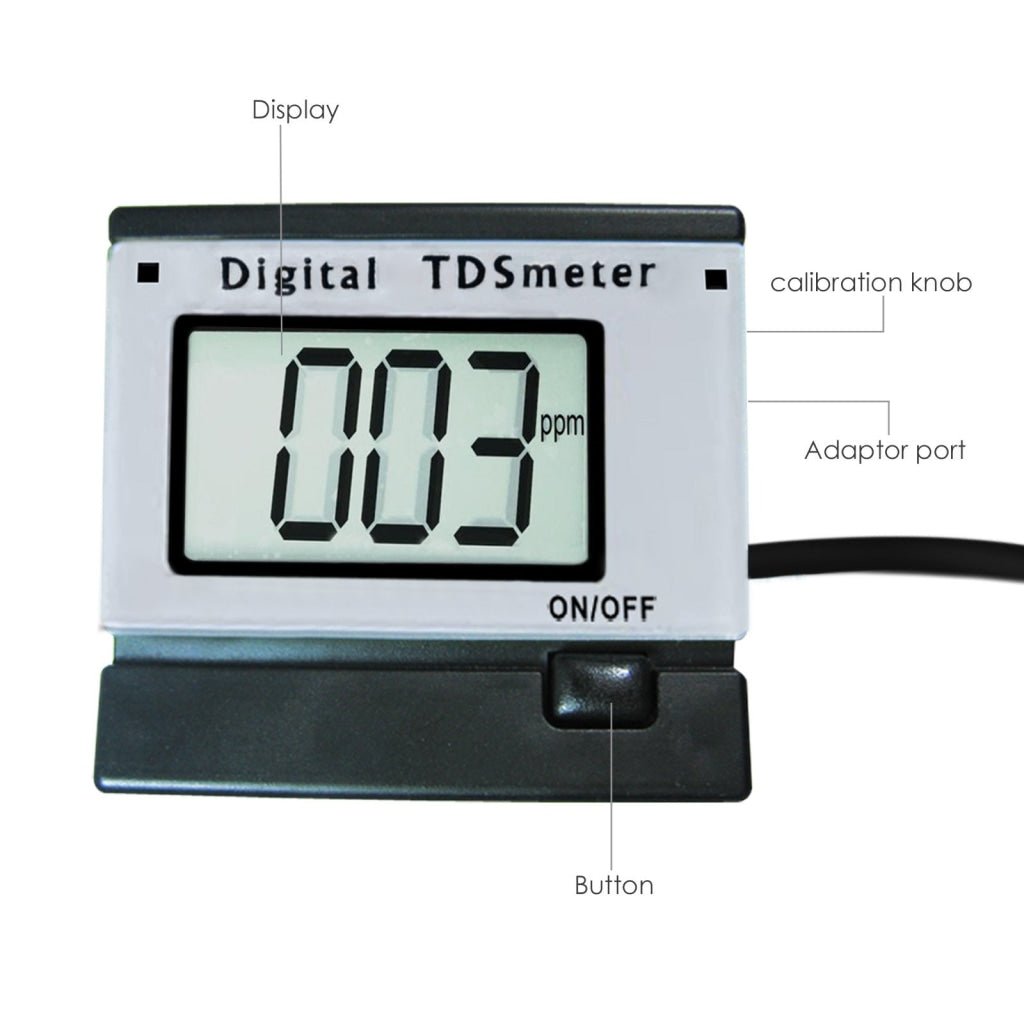 The NEW METER is a less expensive, slick and stylish handy meter that comes with a large and easy to read display system. A cable from meter to sensor and an easy operation-switch-button are provided for easy installation and usage. A mini-screw driver (trimmer) is supplied for easy calibration of the Digital TDS Meter plus it comes with plug adapters that works in Europe, UK and USA so you can just plug your power charger straight into the wall. Also included are four (4) FREE 1.5V batteries for less hanging wires in you aquarium area.