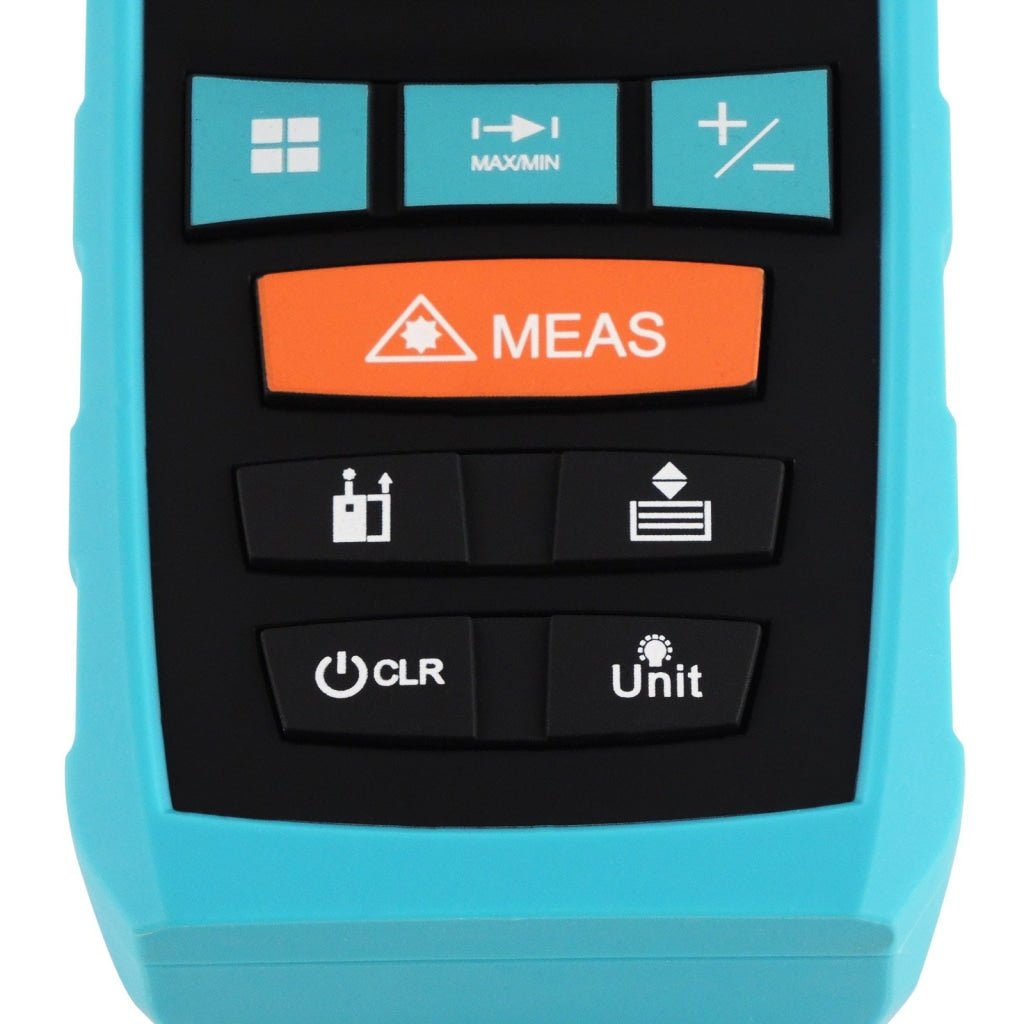 This handy 60m Laser Distance Meter is integrated with professional features such as Single or Continuous measurement, Area, Volume and Indirect measurement via Pythagorean Theorem. Has 10° inclination on sides for convenient reading when attached to a wall.