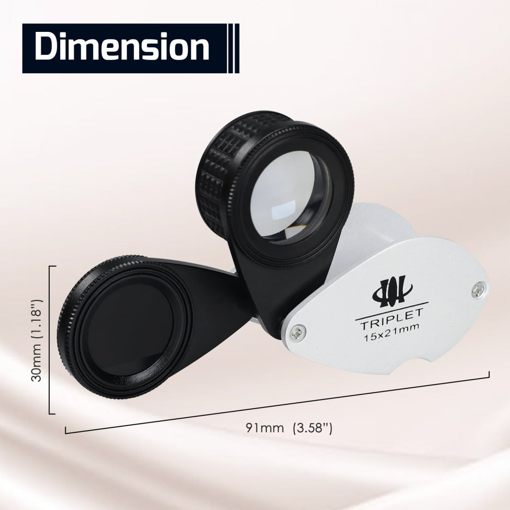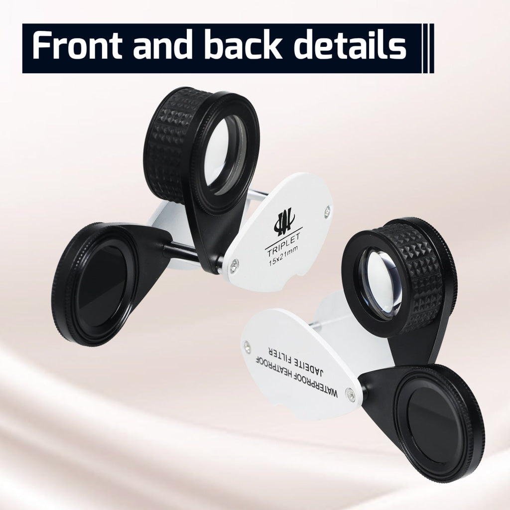 - Dual functionality a combination of a 15x magnifying loupe and a Jadeite filter