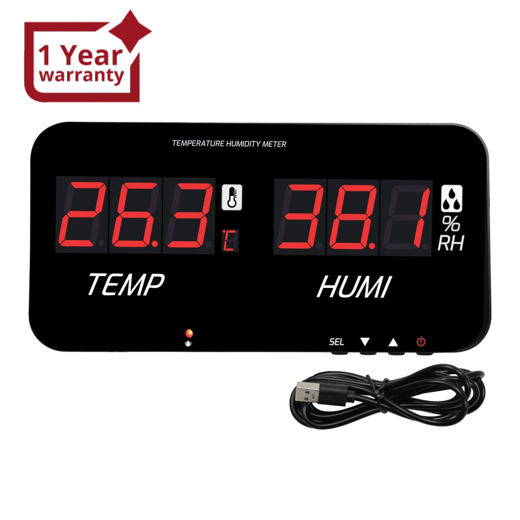 Keep your environment perfectly balanced with our large-display indoor digital hygrometer and thermometer. Featuring a massive 1.8-inch LED display, this device lets you monitor temperature and humidity at a glance from anywhere in the room. Comes with high-precision sensors that deliver accurate readings for temperature and humidity. Stay alerted to unhealthy conditions with fully adjustable high/low alarms— a buzzer and screen flash, and even connect external devices via the 3.5mm alarm output port.