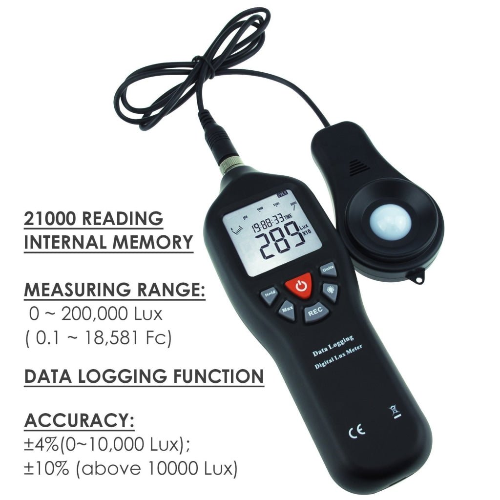 - LUX-29 Digital Light Lux Meter with Data Logging Measurement Range 0 to 200,000 Lux Auto Ranging Instrument LUX-29 Digital Light Lux Meter with Data Logging Measurement Range 0 to 200,000 Lux Auto Ranging Instrument