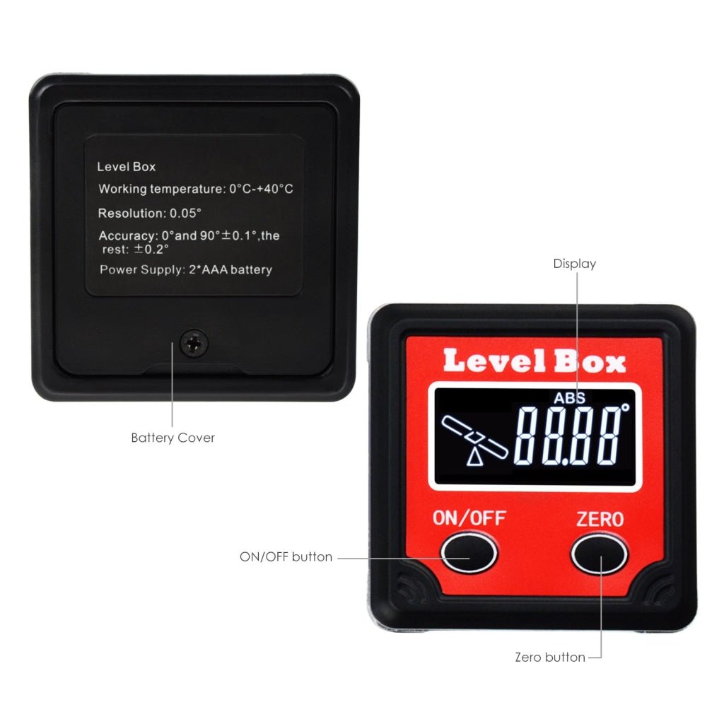 - AGF-260 Digital Level Box Protractor Angle Finder Bevel Gauge Magnetic Base with Tilt Direction Indicator, 360° (4 x 90°) Inclinometer Cube Meter Measurement Tool for Woodworking Installation AGF-260 Digital Level Box Protractor Angle Finder Bevel Gauge Magnetic Base with Tilt Direction Indicator, 360° (4 x 90°) Inclinometer Cube Meter Measurement Tool for Woodworking Installation