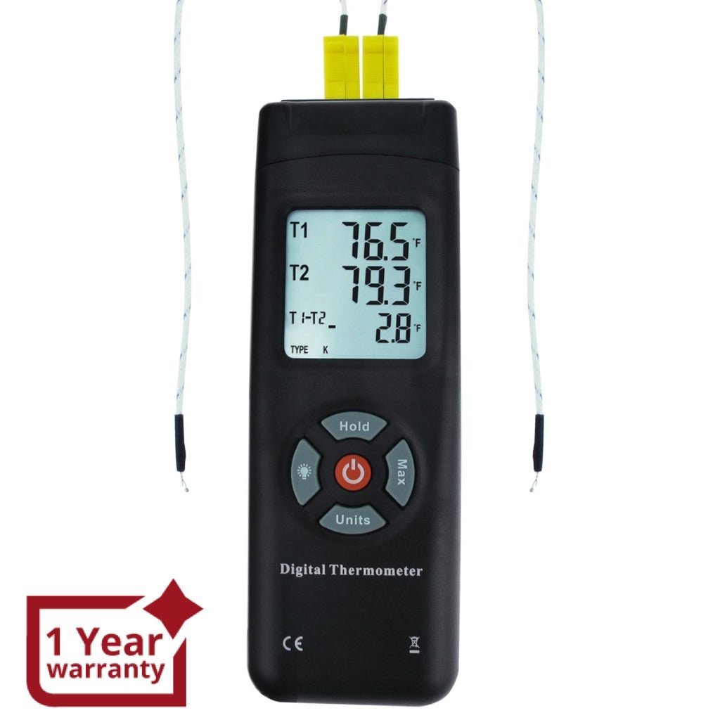 THE-26 Digital Thermometer Dual Type-K Thermocouples Probe Temperature Instrument Large Display with Backlight
