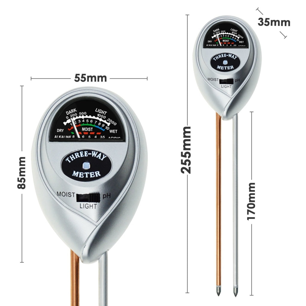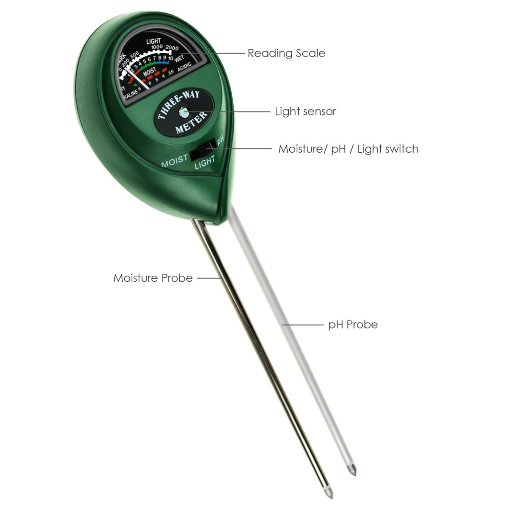 - SQM-257 3-in-1 Soil pH, Moisture & Light Meter Tester Probe Sensor, Gardening Plants Growth Watering Quality Monitoring Acidity Test Tool Kits for Garden Farm Lawn Household Indoor Outdoor SQM-257 3-in-1 Soil pH, Moisture & Light Meter Tester Probe Sensor, Gardening Plants Growth Watering Quality Monitoring Acidity Test Tool Kits for Garden Farm Lawn Household Indoor Outdoor
