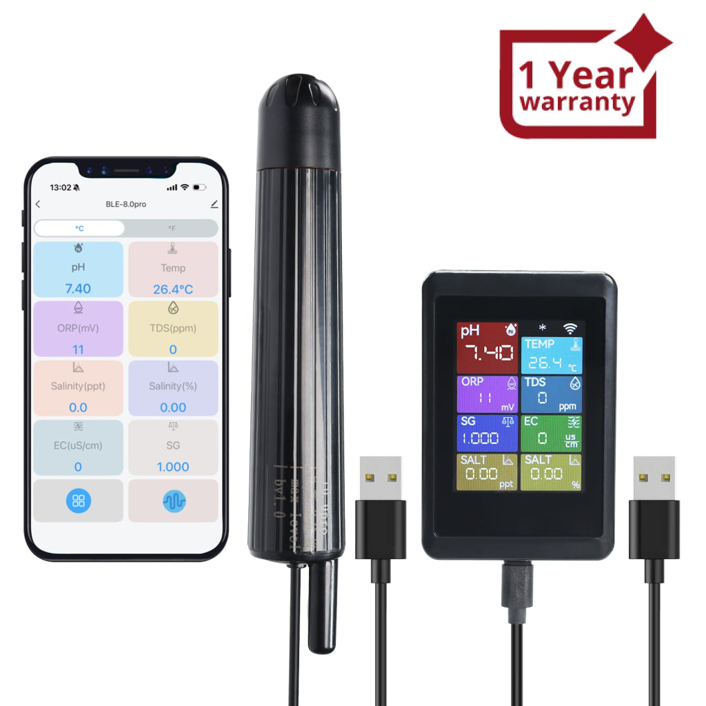 - WQM-525 WiFi Smart pH Meter 8-in-1, Multi-Parameter Water Quality Tester for pH/TDS/EC/Salinity/ORP/Temp for Aquarium, Hydroponics, Pool WQM-525 WiFi Smart pH Meter 8-in-1, Multi-Parameter Water Quality Tester for pH/TDS/EC/Salinity/ORP/Temp for Aquarium, Hydroponics, Pool