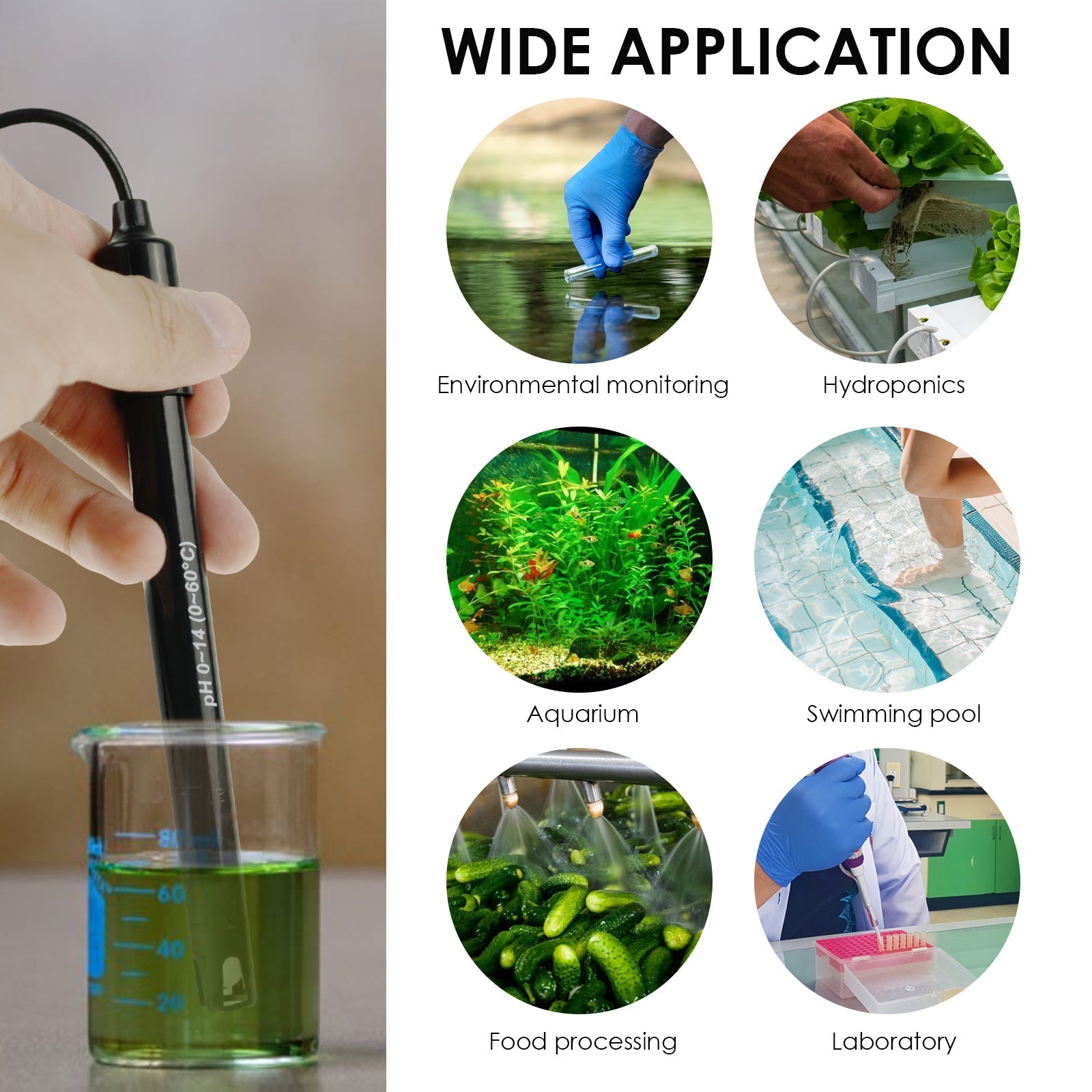 E-312 High Accuracy pH Electrode with Calibration Powder, 0-14 pH Probe with BNC Connector & 300cm Cable for Wide Application