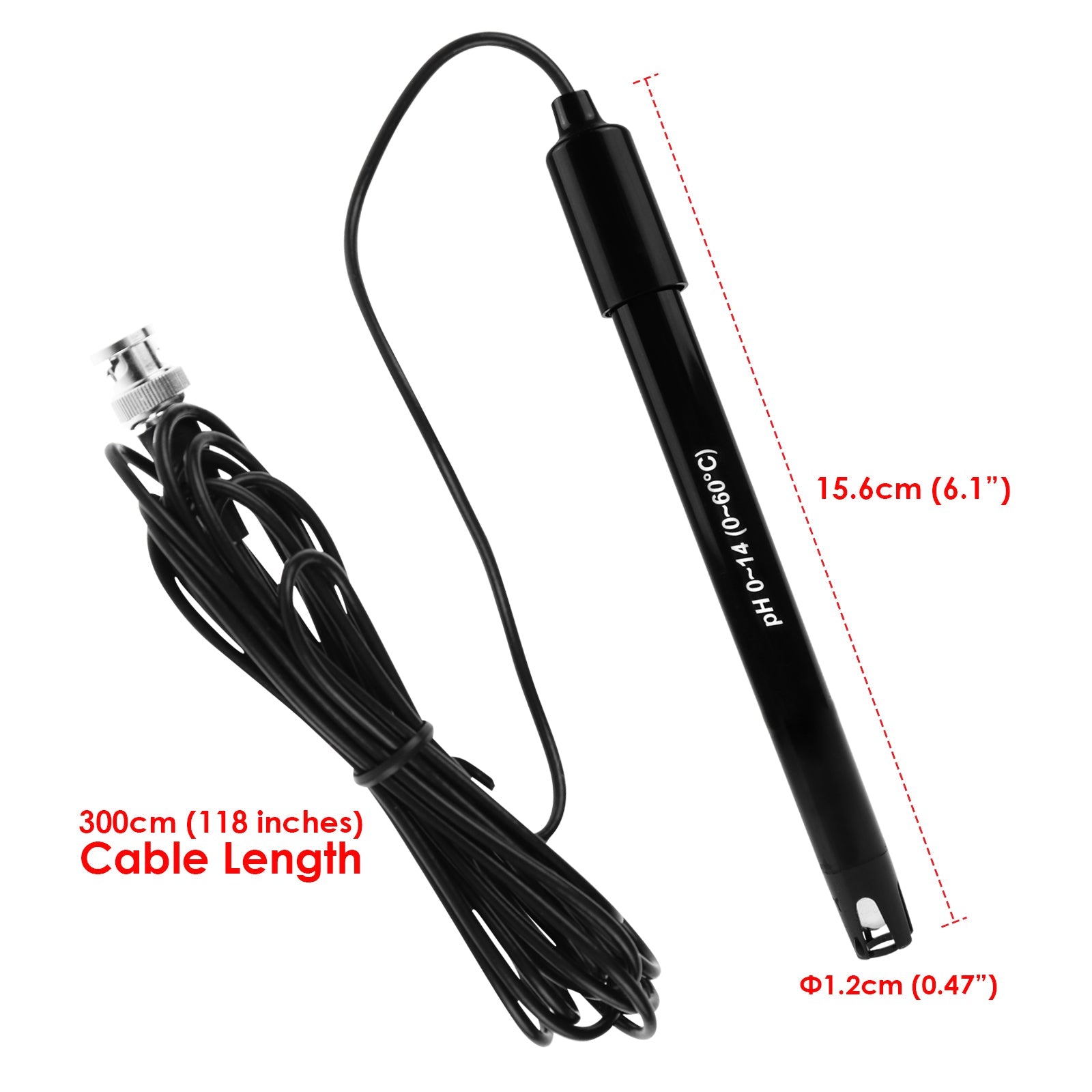 This pH electrode is made of a silver chloride (Ag/AgCl) reference electrode to measure pH value of liquid. It has a BNC type socket with 300cm long cable that allows you to connect directly to the input terminal of your pH meter, pH controller or any pH device that has a BNC input terminal.