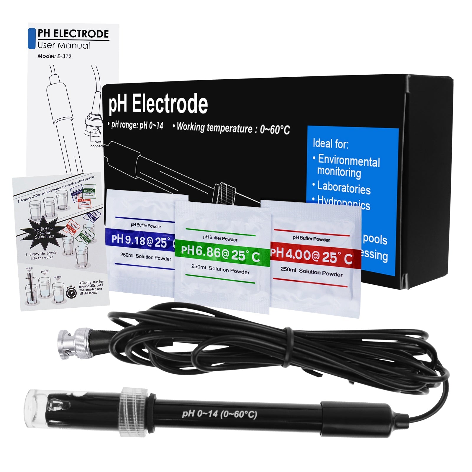 - E-312 High Accuracy pH Electrode with Calibration Powder, 0-14 pH Probe with BNC Connector & 300cm Cable for Wide Application E-312 High Accuracy pH Electrode with Calibration Powder, 0-14 pH Probe with BNC Connector & 300cm Cable for Wide Application
