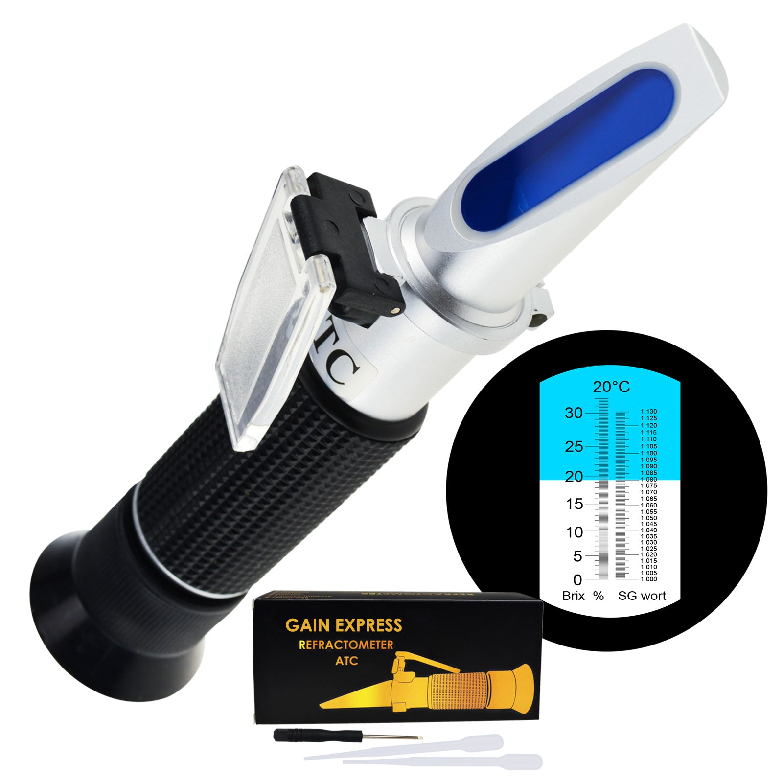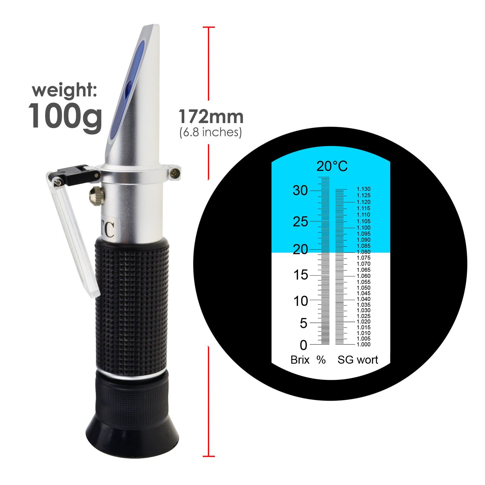 - REB-32SGATC Beer Brix & Specific Gravity Refractometer with ATC Optic Dual Scale 0~32% Brix 1.000-1.130 SG Wine Wort Making Beer Brewing Fruit Juice Hops Sugar Homebrew Kit REB-32SGATC Beer Brix & Specific Gravity Refractometer with ATC Optic Dual Scale 0~32% Brix 1.000-1.130 SG Wine Wort Making Beer Brewing Fruit Juice Hops Sugar Homebrew Kit