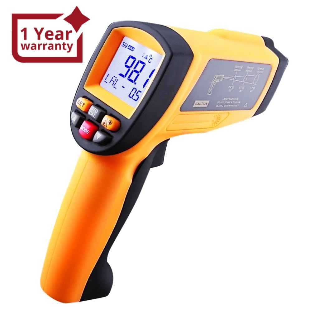 The Professional Digital Infrared Thermometer is a reliable device used for measuring temperature of an object’s surface, which is applicable for various hot, hazardous or hard-to-reach objects without contact safely and quickly. Just aim the laser point, press the button, and read the temperature in less than a second.