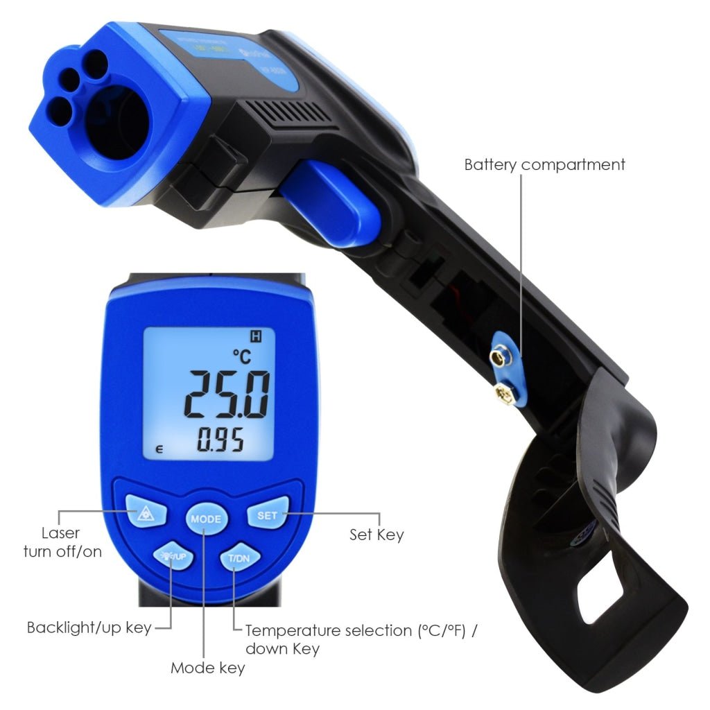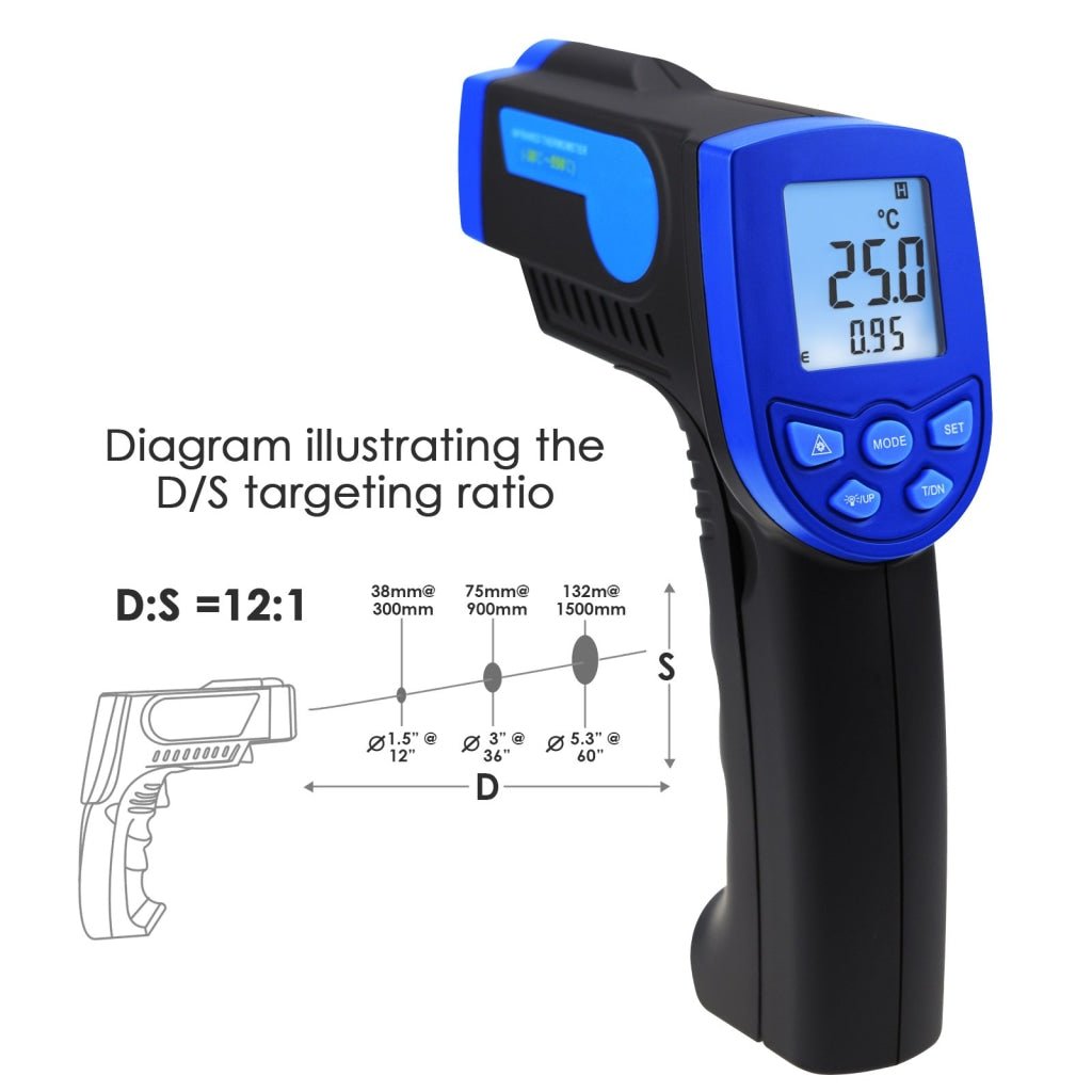 - THE-217 Non-Contact Lasergrip Infrared 12:1 DS Thermometer Laser Temperature Gun -30 ~ 550°C (-22 to 1022°F) Digital IR Instrument Meter THE-217 Non-Contact Lasergrip Infrared 12:1 DS Thermometer Laser Temperature Gun -30 ~ 550°C (-22 to 1022°F) Digital IR Instrument Meter