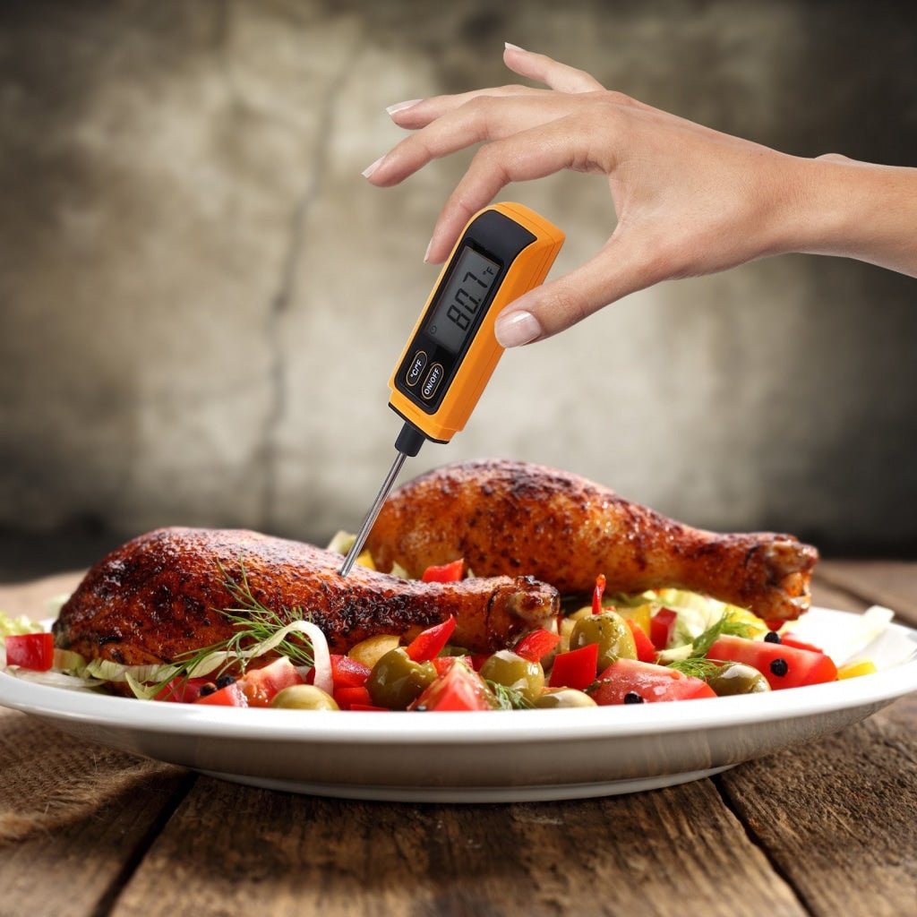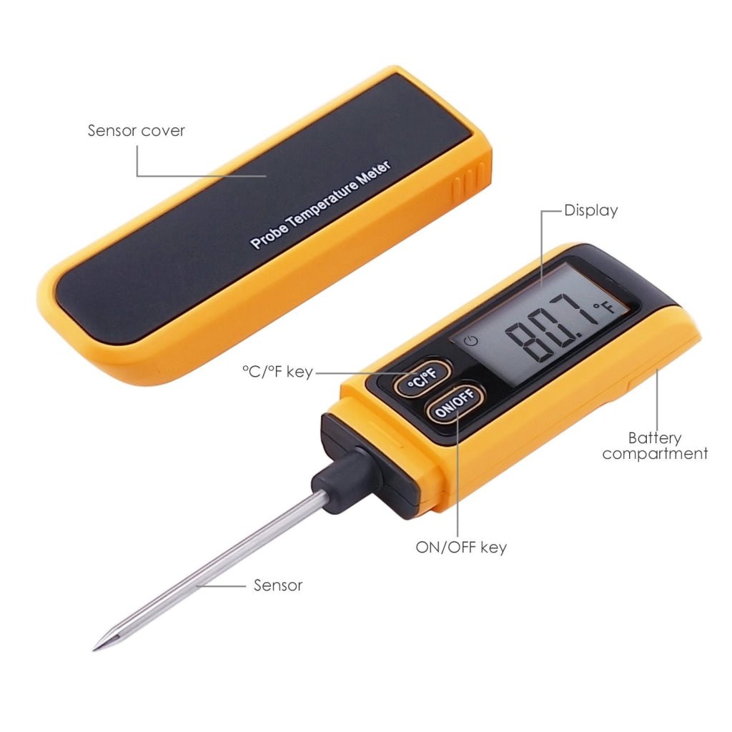 This thermometer looks like an extra-large needle with a temperature gauge on the end. It delivers reliable results when you want accurate measurement readings of both internal and ambient temperatures.