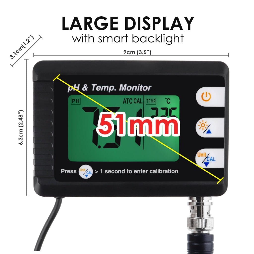 PHM-295 2-in-1 Combo pH & Temperature Meter Fish Tank Monitor Thermometer Replaceable BNC pH Electrode for Aquariums Hydroponics Aquaculture Laboratory