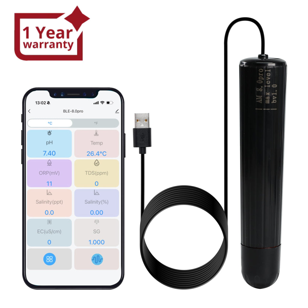 Ensure optimal water conditions for your aquarium, hydroponics, or aquaculture with this advanced WiFi-enabled water quality probe. This 7-in-1 smart probe measures pH, Temperature, TDS (Total Dissolved Solids), EC (Electrical Conductivity), Salinity, Specific Gravity (S.G), and ORP (Oxidation-Reduction Potential all in real time!