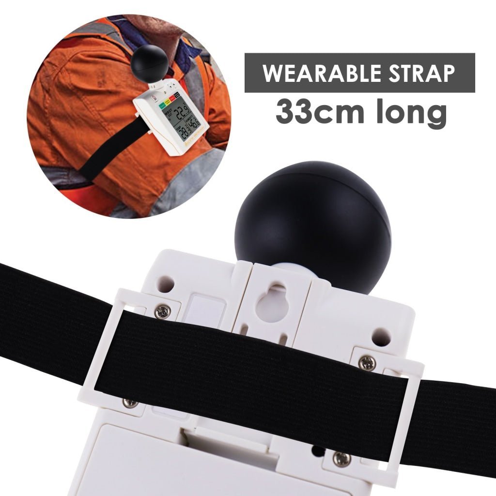 87784 Wearable 2-in-1 WBGT + HI Heat Index Checker Wet Bulb Globe Temperature Heat Stress Meter Air Globe Temperature Humidity Tester with Dangerous Level Indicator Audible Alarm
