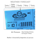 - Five (5) Weather icons display : Sunny / Slightly cloudy / Cloudy / Rainy / Stormy (can also be selected manually)