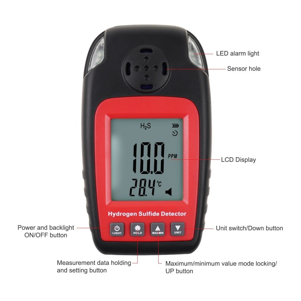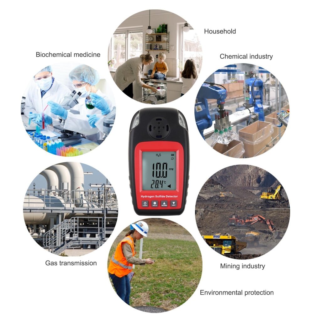 Hydrogen Sulfide Detector (H₂S) monitor is designed for detecting hydrogen sulfide concentration to help keep individuals safe in hazardous environments. It comes with high-quality sensor with reliable and accurate measurement. It is widely used in household, petroleum plant, chemical environmental protection, metallurgy, refining, biochemical medicine, agricultural research, etc.