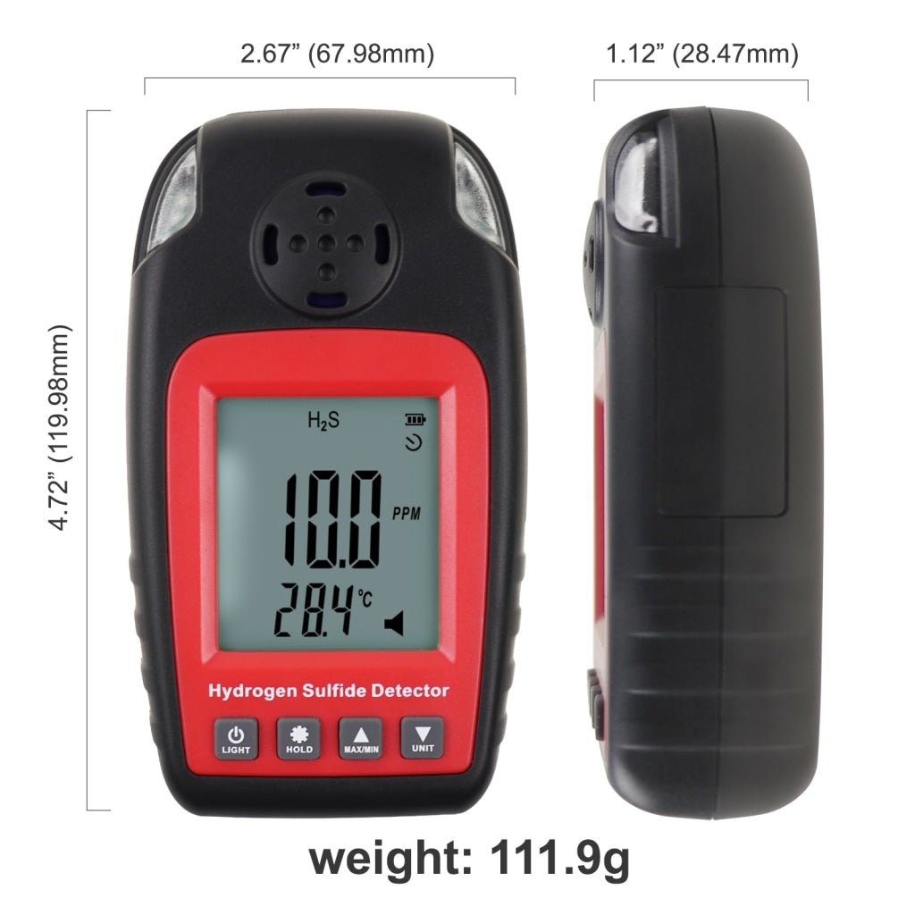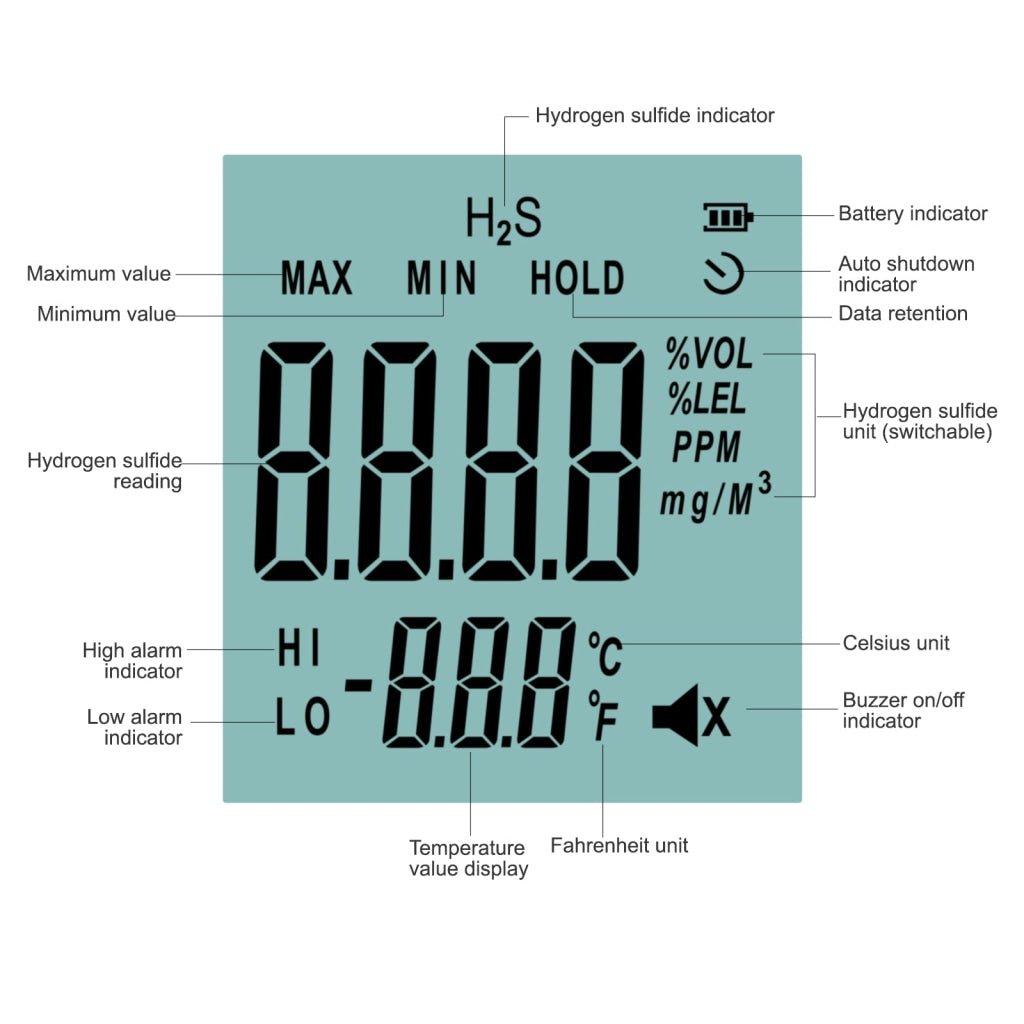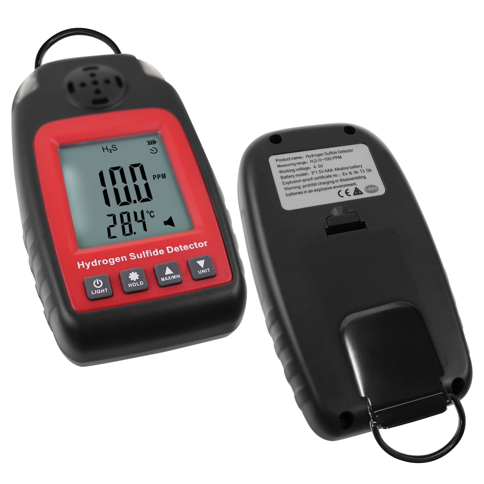 - AQM-338 Hydrogen Sulfide Detector H₂S Monitor 0~100ppm Electrochemical H₂S Sensor LED Alarm with LCD Screen Backlight Portable Tester AQM-338 Hydrogen Sulfide Detector H₂S Monitor 0~100ppm Electrochemical H₂S Sensor LED Alarm with LCD Screen Backlight Portable Tester