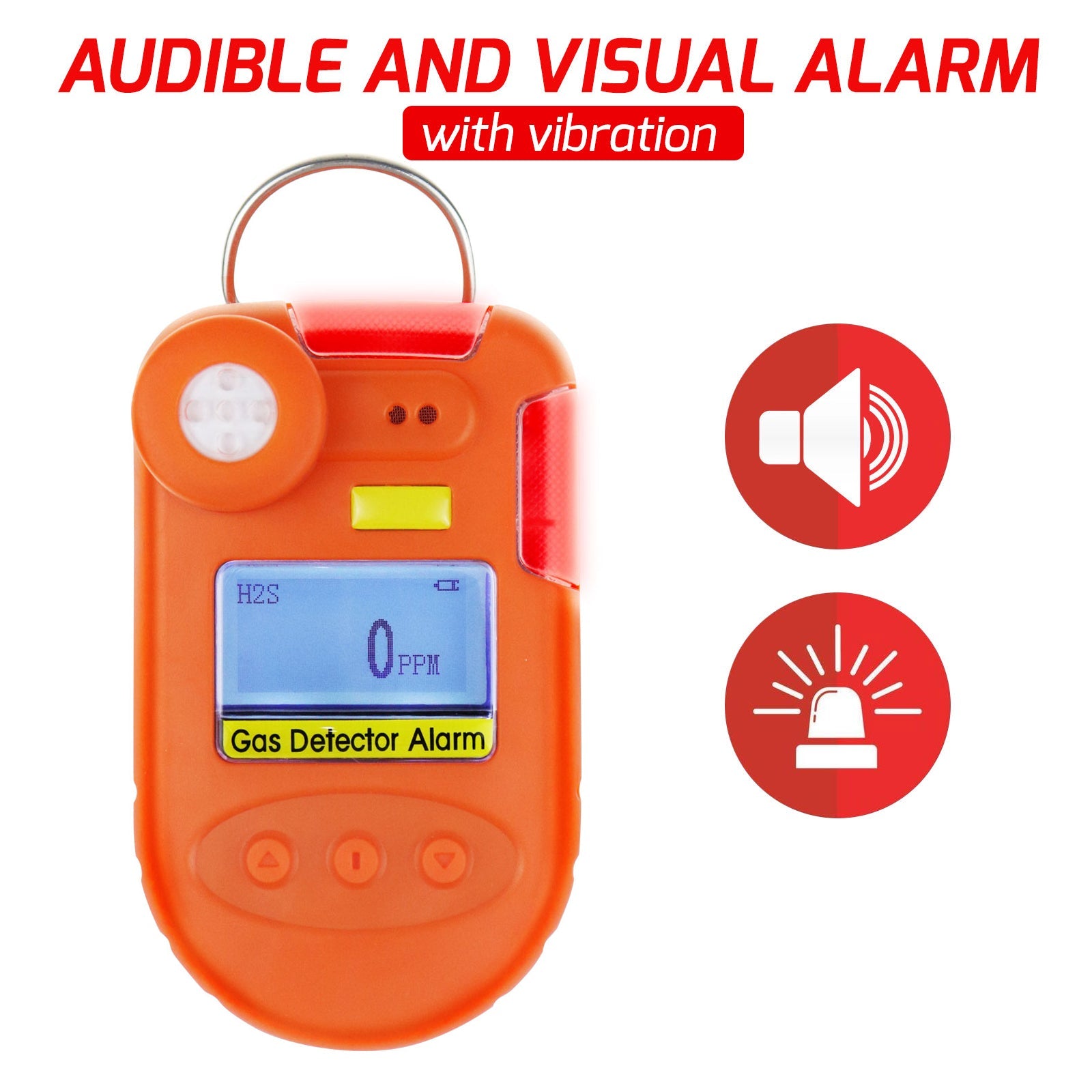 - AQM-374 Portable Hydrogen Sulfide (H₂S) Gas Detector 1500 Record Alarm Events with Audible, Visual, Vibration Alarm Function AQM-374 Portable Hydrogen Sulfide (H₂S) Gas Detector 1500 Record Alarm Events with Audible, Visual, Vibration Alarm Function