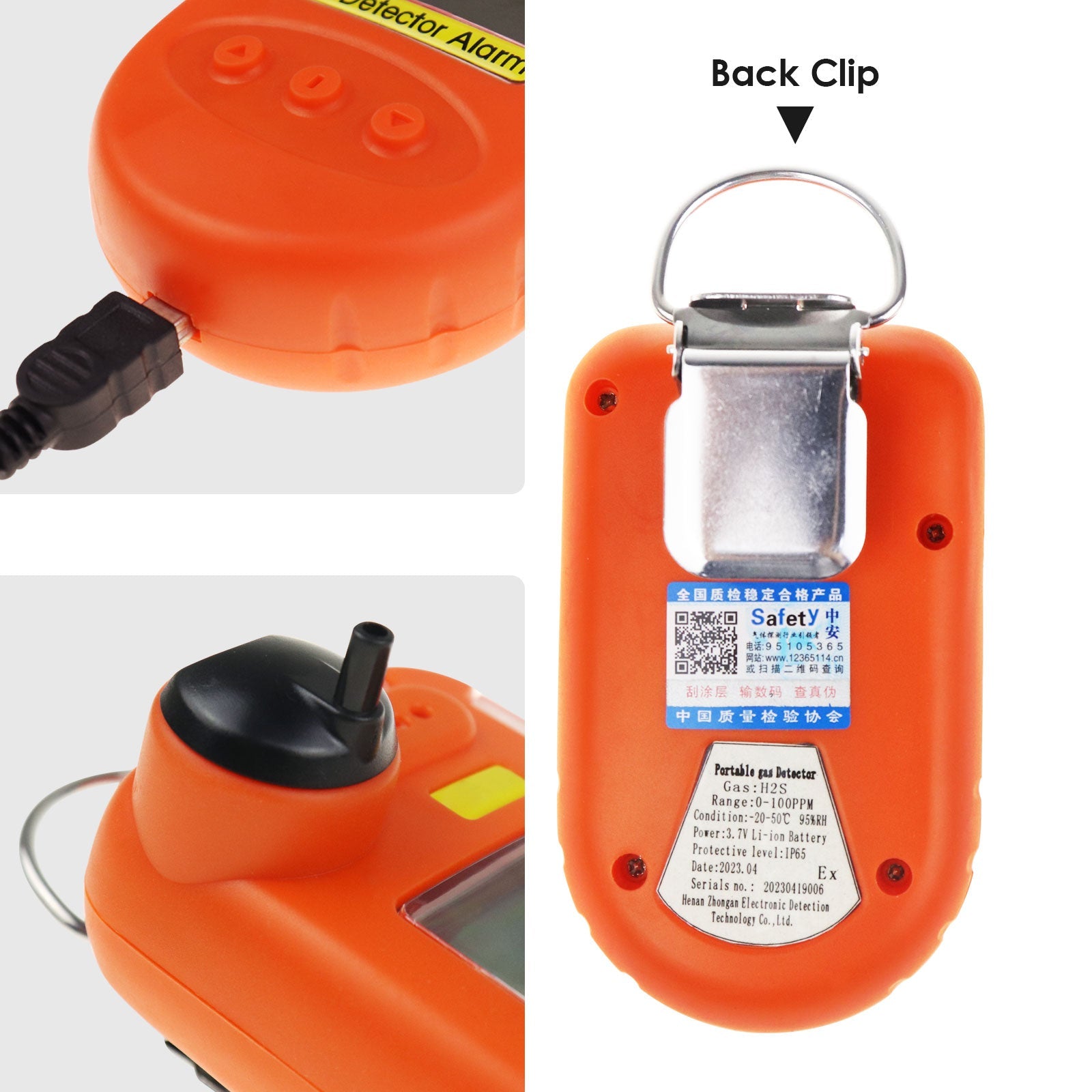 AQM-374 Portable Hydrogen Sulfide (H₂S) Gas Detector 1500 Record Alarm Events with Audible, Visual, Vibration Alarm Function