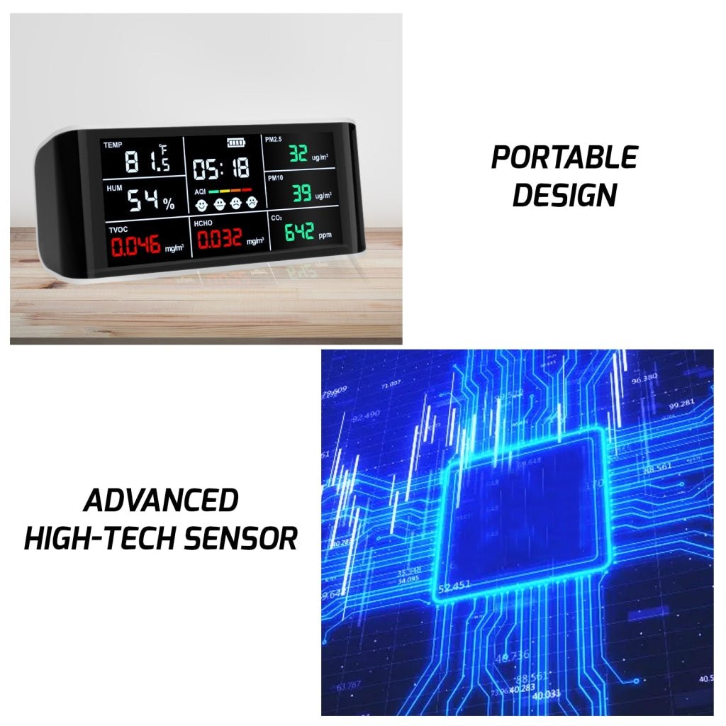 - AQM-388 Portable 9 in 1 Indoor Air Quality Meter CO2 Monitor Formaldehyde Detector VOC Sensor AQI Index PM2.5 PM10 and Humidity Temp with Time Display Air Monitor Test Kit AQM-388 Portable 9 in 1 Indoor Air Quality Meter CO2 Monitor Formaldehyde Detector VOC Sensor AQI Index PM2.5 PM10 and Humidity Temp with Time Display Air Monitor Test Kit