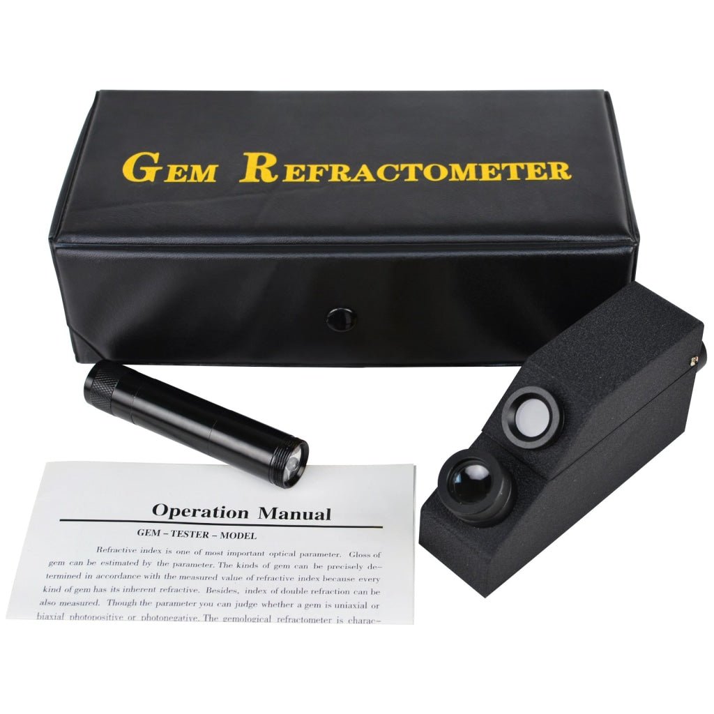 Gemological (Gemstone) Refractometer is your primary and most powerful tool in gemstone identification. As with a typical critical angle refractometer, it will measure the Refractive Index of faceted stones.