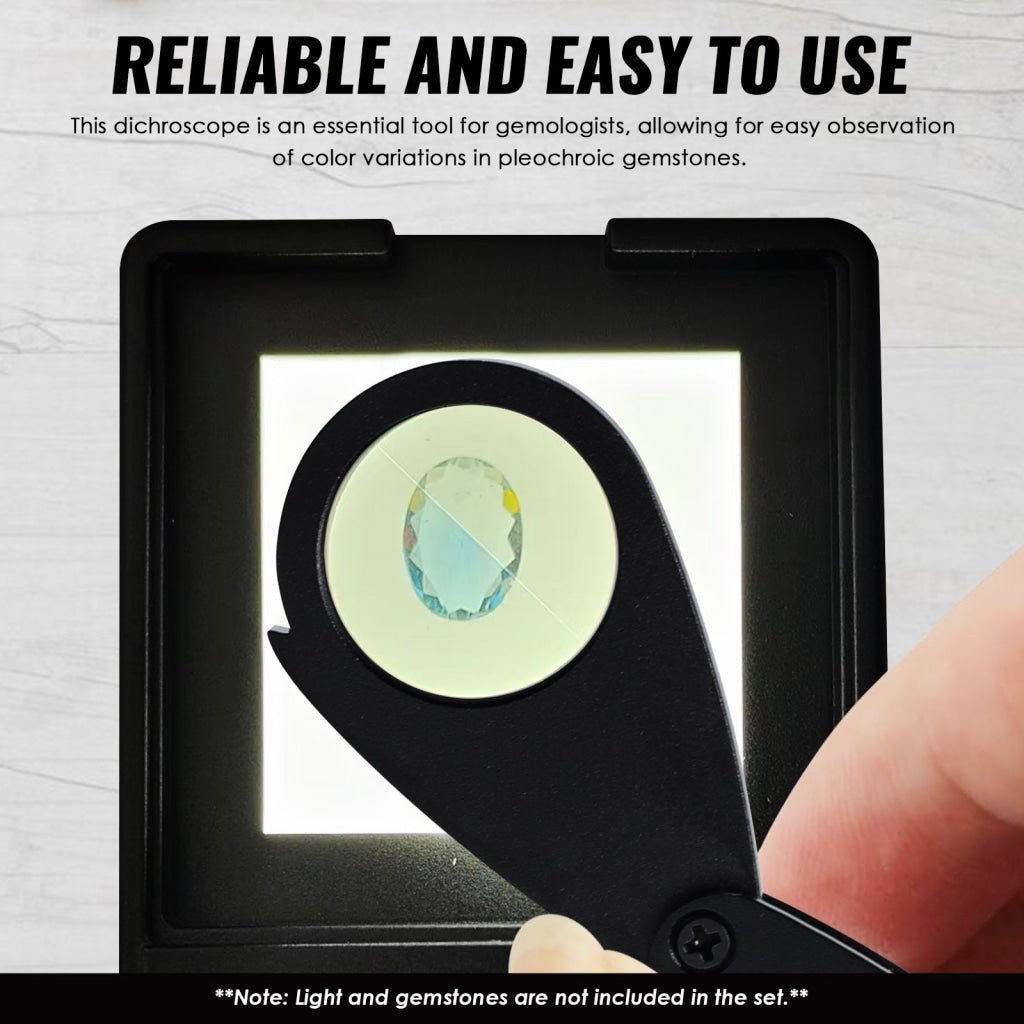 - CLMG-7209 Foldaway Dichroscope Gemstone Jewelry Testing Tool Lightweight and Portable Ideal for Jewelers and Gemologists CLMG-7209 Foldaway Dichroscope Gemstone Jewelry Testing Tool Lightweight and Portable Ideal for Jewelers and Gemologists
