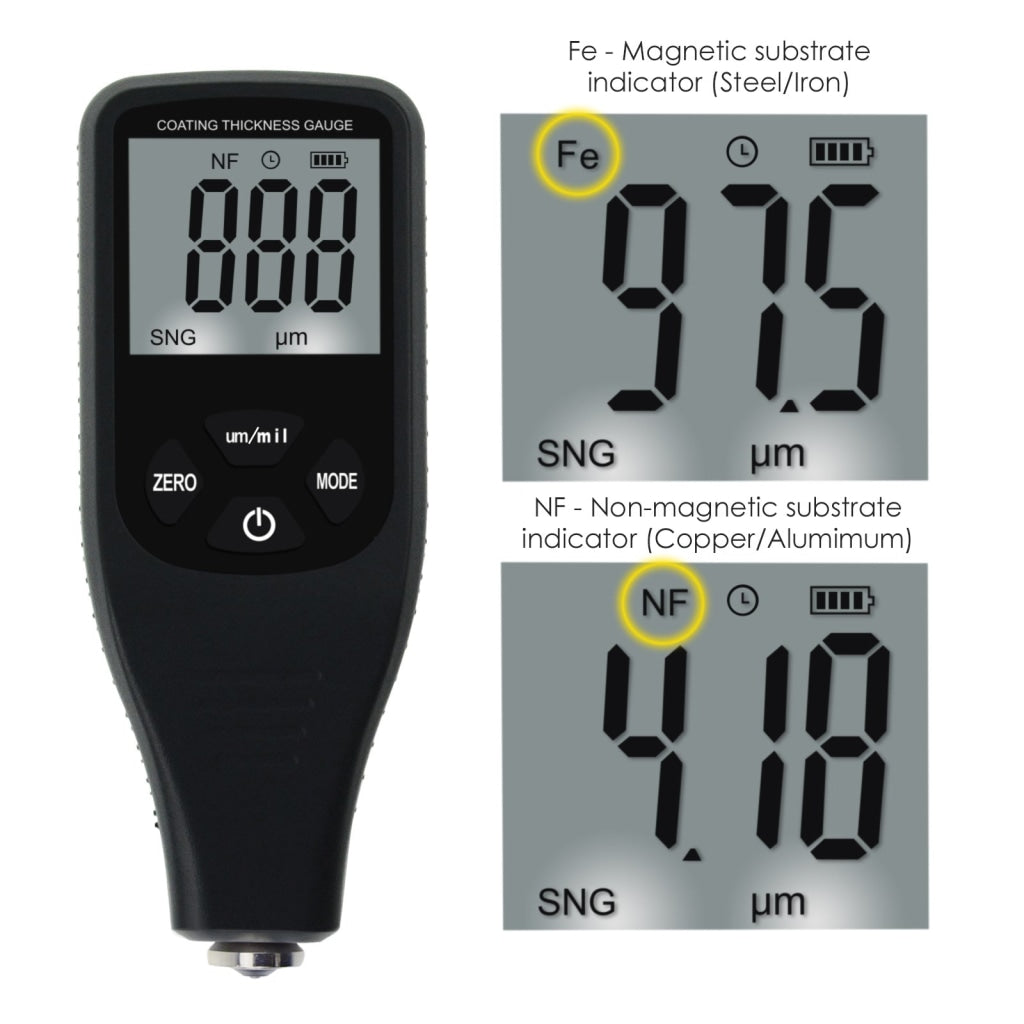 - CTM-259 Fe/ NF Coating Thickness Gauge Tester, 0~1300um 0~51.2mil Attribute Auto Detection & Substrate Paint Non-destructive Measurement, for Car Automotive Inspection Chemical Metal Processing CTM-259 Fe/ NF Coating Thickness Gauge Tester, 0~1300um 0~51.2mil Attribute Auto Detection & Substrate Paint Non-destructive Measurement, for Car Automotive Inspection Chemical Metal Processing