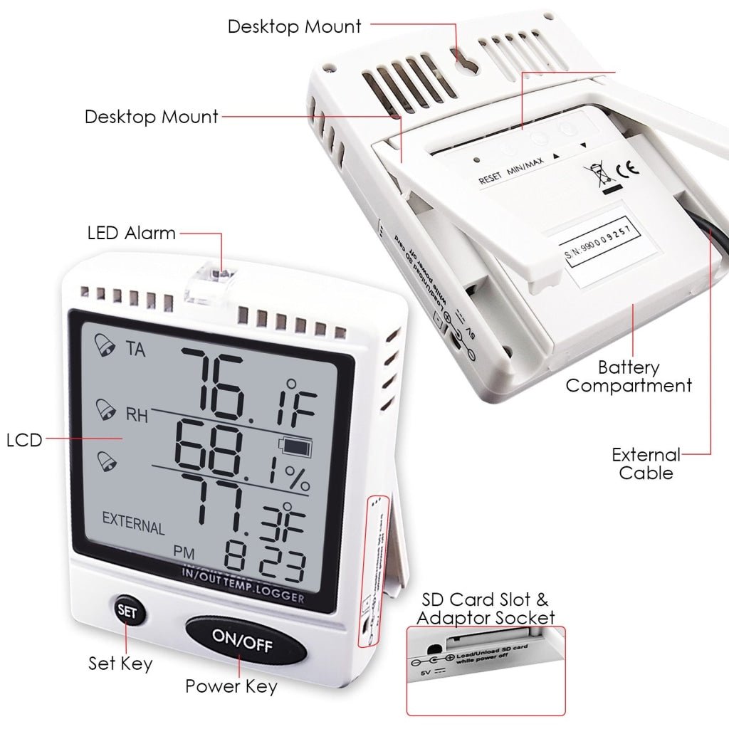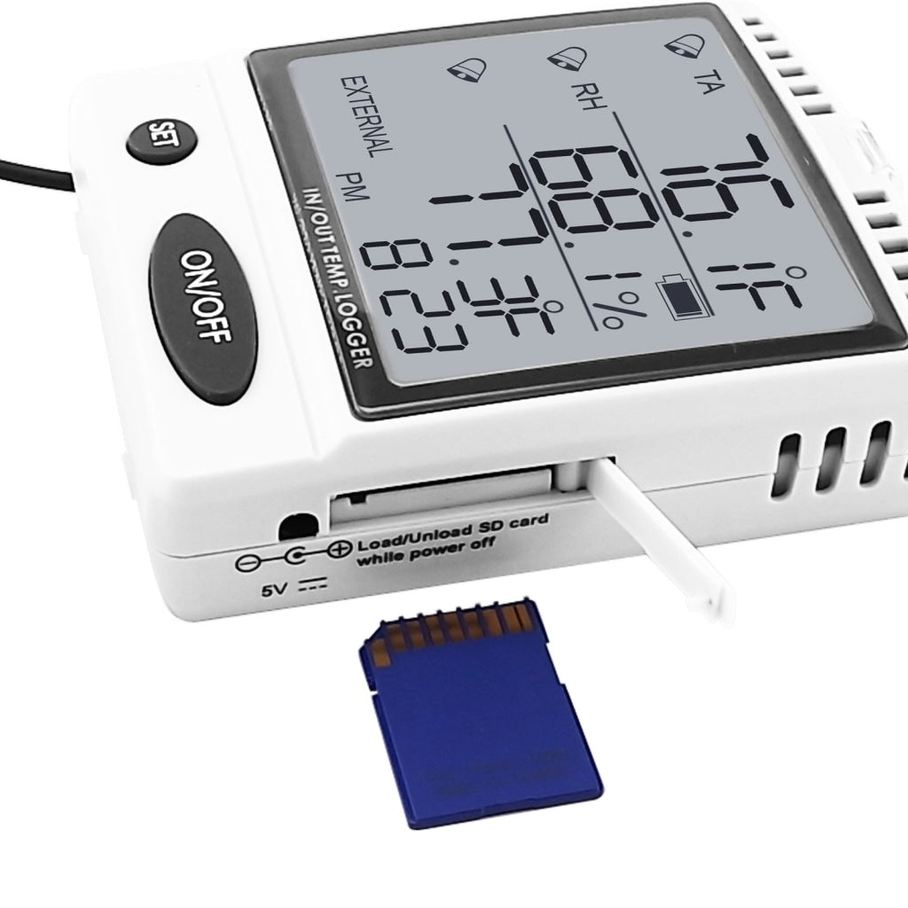 - DLG-87799_SD Professional Humidity and Temperature Meter Data Logger SD Memory Record External / Internal Sensor DLG-87799_SD Professional Humidity and Temperature Meter Data Logger SD Memory Record External / Internal Sensor