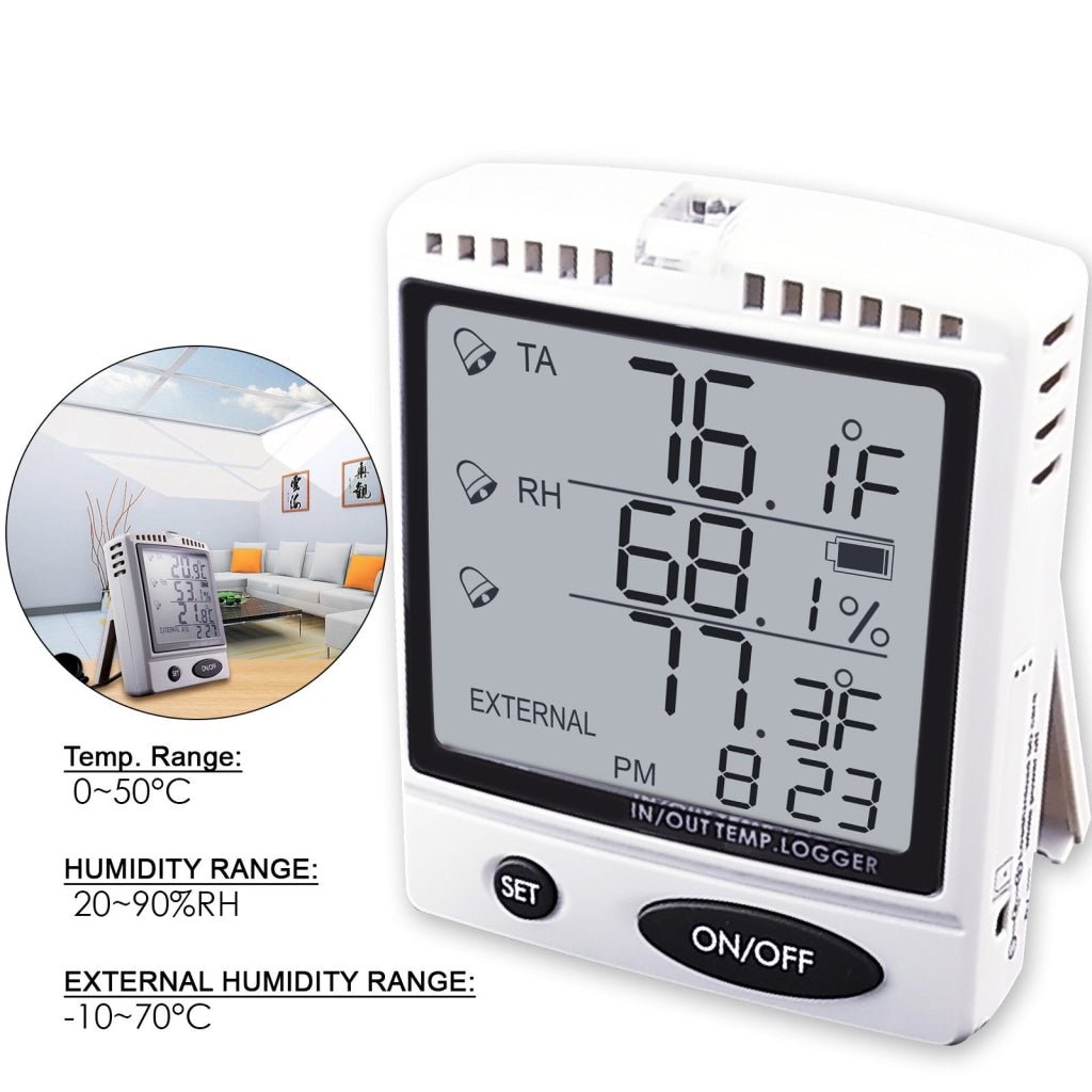 - User-programmable high & low alarm thresholds for humidity & air temperature
