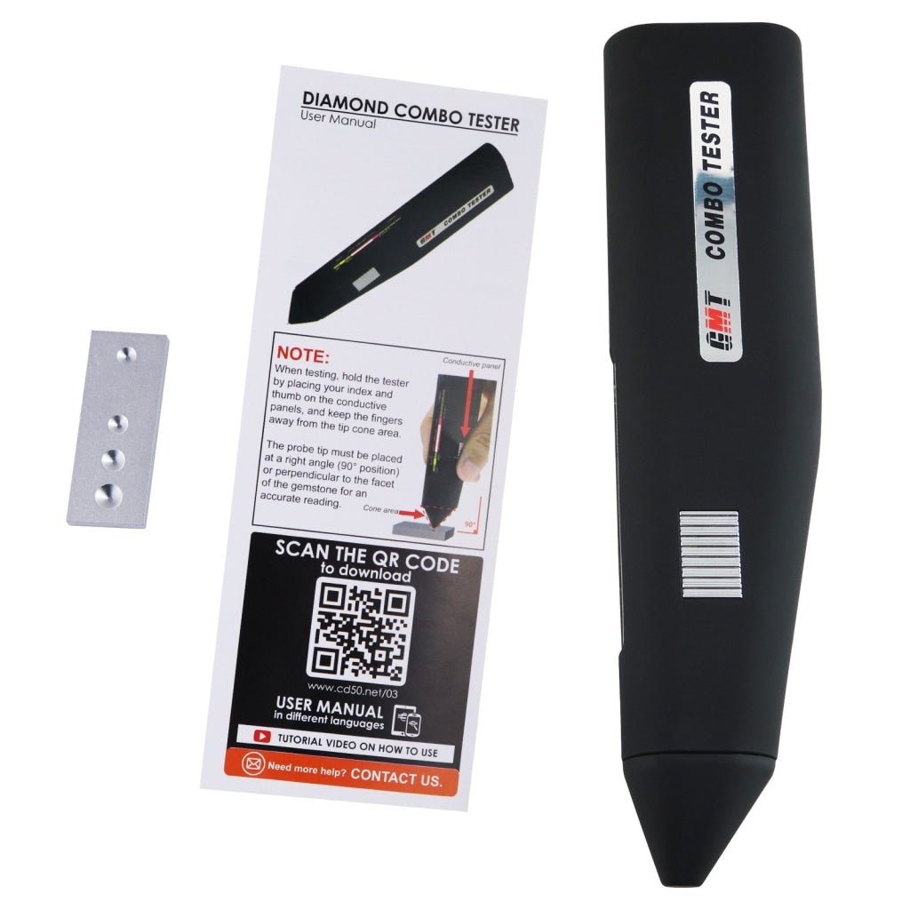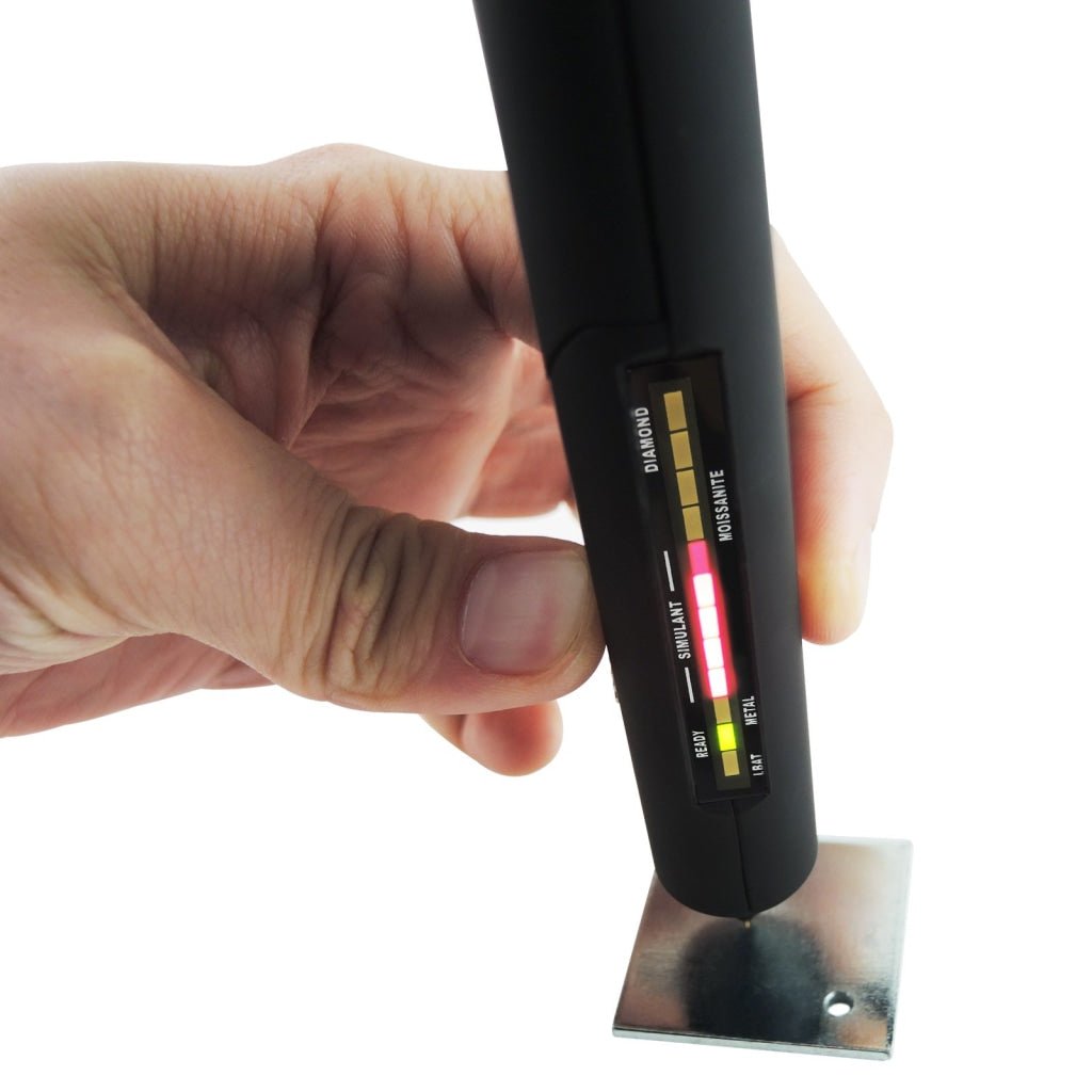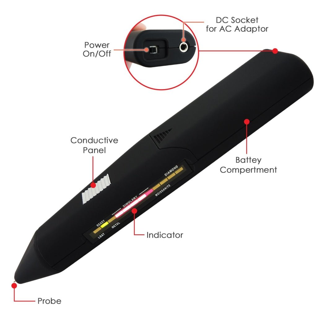 This tester is designed to distinguish diamond, moissanite from other fake stones quickly. It has fine elastic tipped probe for testing and able to identify stones as small as 2pt.