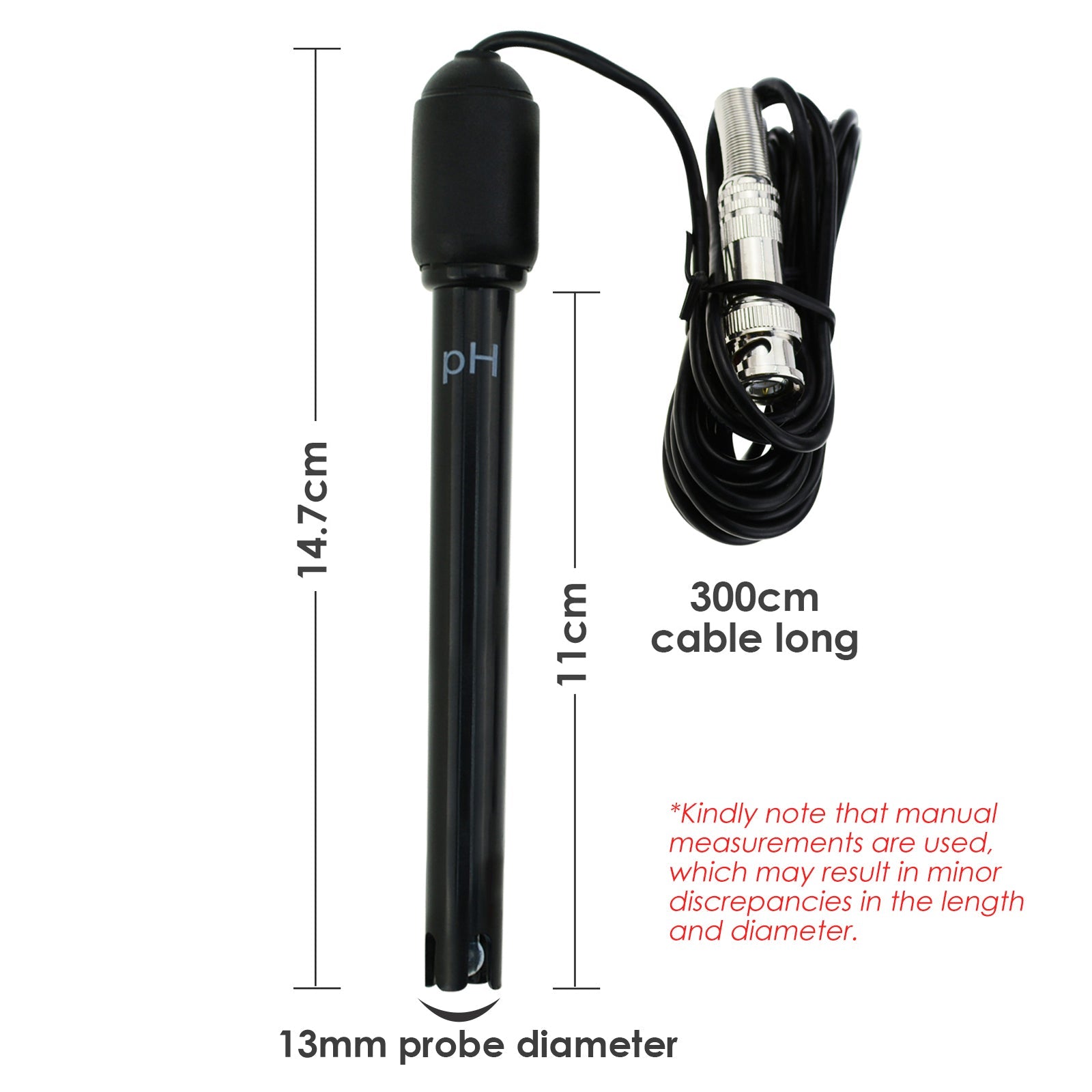 - E-1325M 0-14 pH Electrode Probe BNC Connector, 300cm Cable for PH Meter Monitor Controller Test Sensor, Replacement Kit for Aquarium Hydroponics Plant Pool Spa E-1325M 0-14 pH Electrode Probe BNC Connector, 300cm Cable for PH Meter Monitor Controller Test Sensor, Replacement Kit for Aquarium Hydroponics Plant Pool Spa
