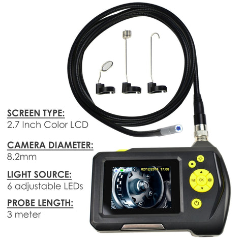 END-23_8.2mm_3M Waterproof Endoscope Digital Inspection Camera Borescope 8.2mm Camera 2.7 inch Screen Monitor and 3 Meter Cable, Handheld Digital