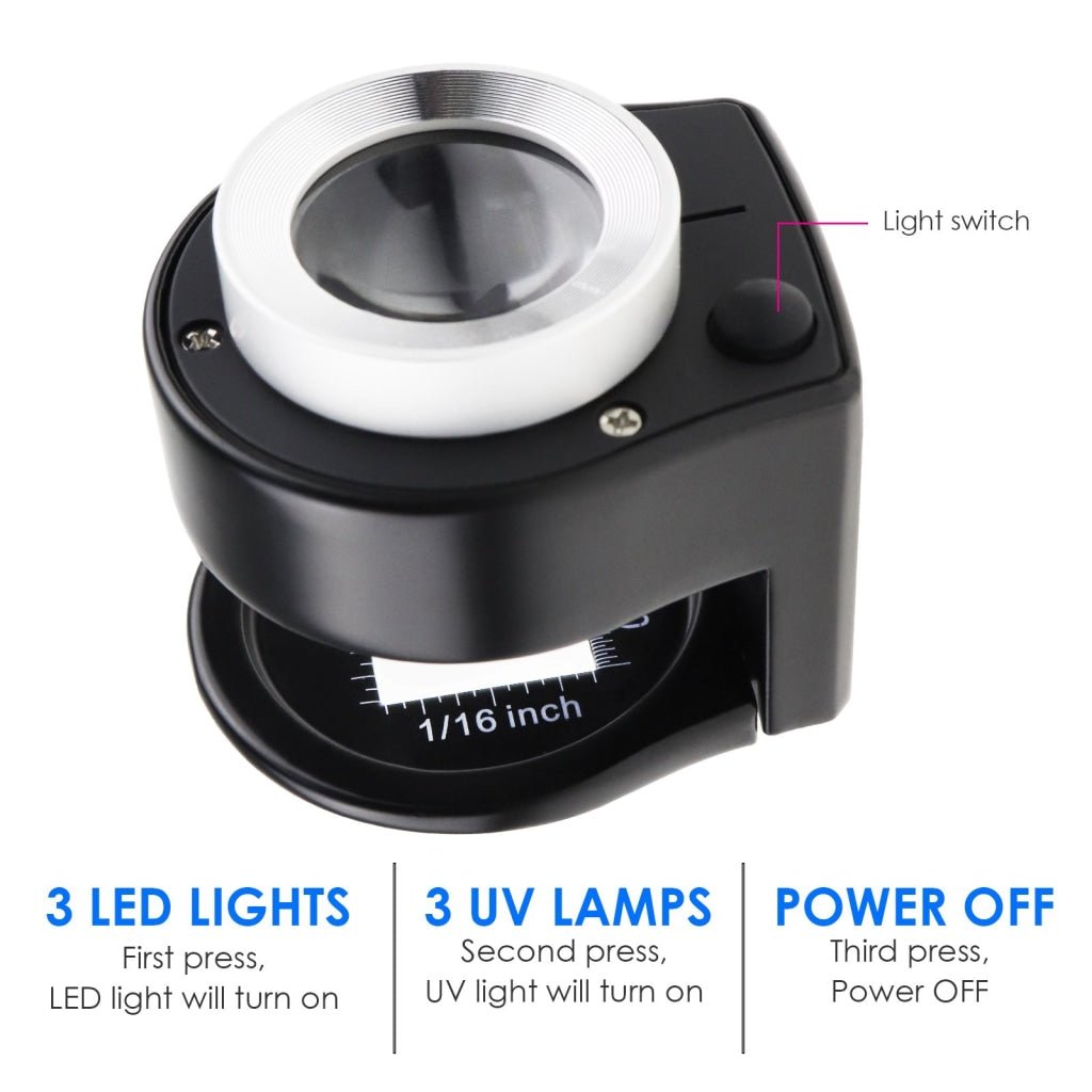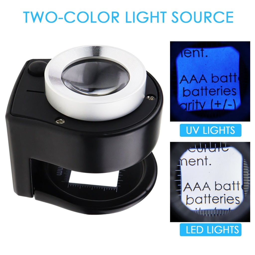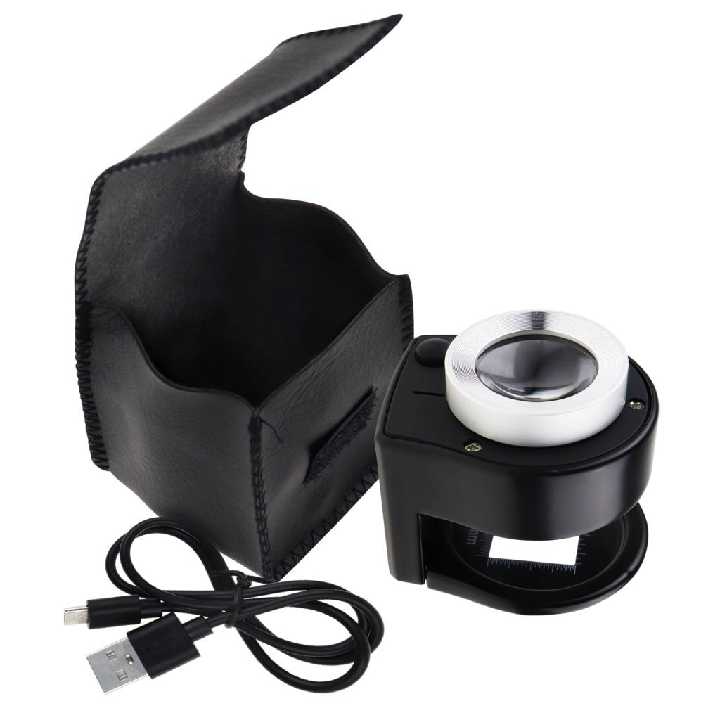 - GEM-309 30x Magnification Magnifying Glass Jewelers Loupe, 6 Lights Desktop Metal Magnifier Portable Folding Scale Eye Loop for Textile Optical Jewelry Tool Coins Currency Stamps (Rechargeable / Replaceable Battery) GEM-309 30x Magnification Magnifying Glass Jewelers Loupe, 6 Lights Desktop Metal Magnifier Portable Folding Scale Eye Loop for Textile Optical Jewelry Tool Coins Currency Stamps (Rechargeable / Replaceable Battery)
