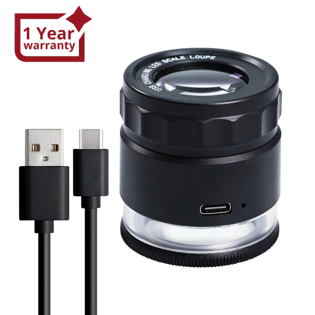 - GEM-446 Rechargeable 10x Magnification Scale Loupe, K9 Optical Glass with LED/UV Lighting and Adjustable Focal Length for Jewelry, Coins, Stamps, and Small Objects GEM-446 Rechargeable 10x Magnification Scale Loupe, K9 Optical Glass with LED/UV Lighting and Adjustable Focal Length for Jewelry, Coins, Stamps, and Small Objects