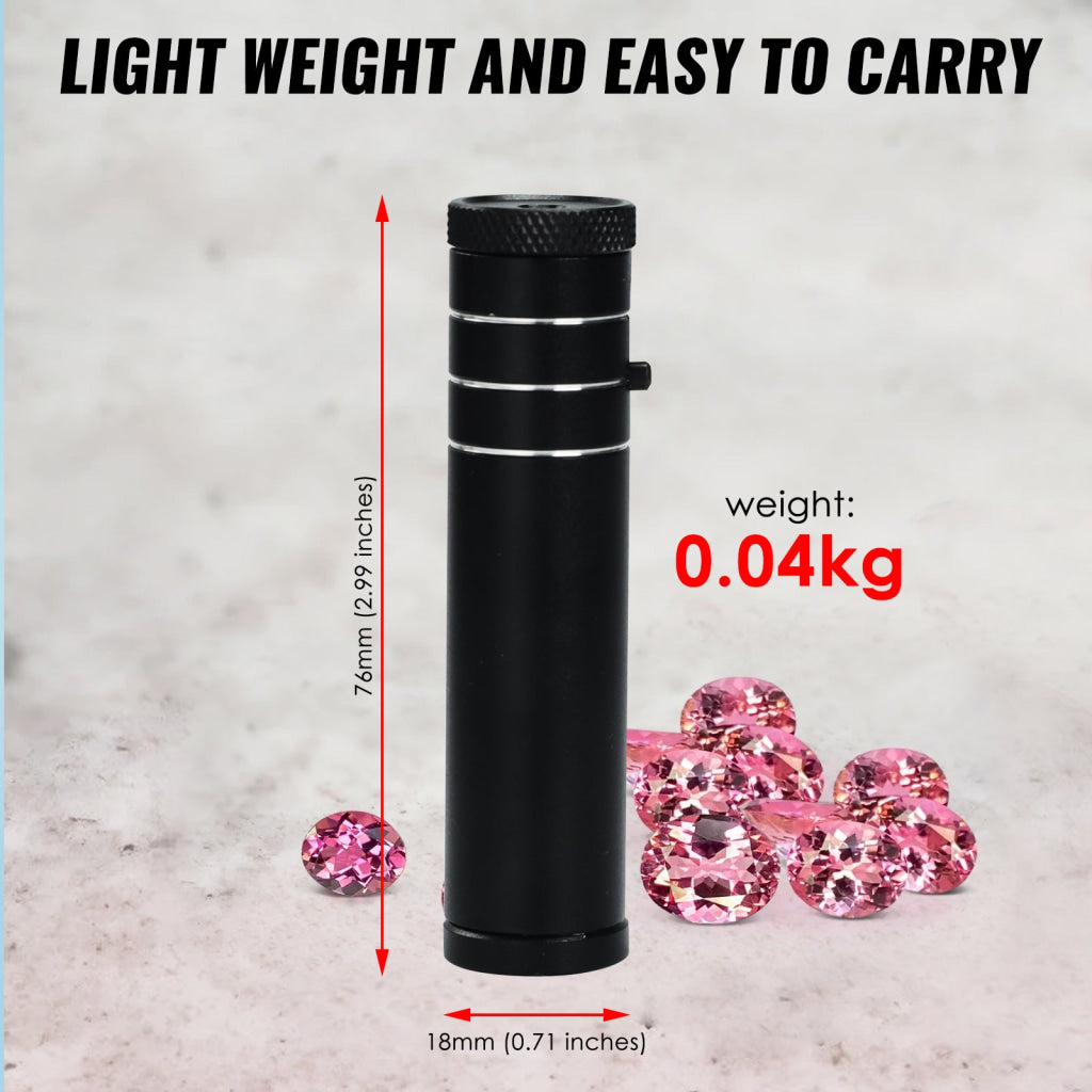 This Focusing Prism Spectroscope is an essential tool for gemologists and jewelry enthusiasts, designed to analyze the light spectrum of loose or set gemstones with precision. This compact, durable device breaks down light into its spectral colors, allowing you to observe the unique wavelengths absorbed by gemstones, aiding in their identification.