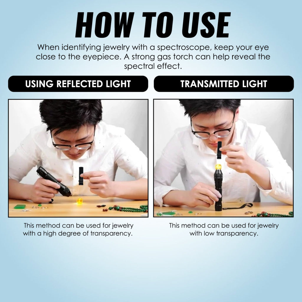 - GEM-461 Focusing Prism Spectroscope for Gemstone Analysis Adjustable Focus, 400-700nm Wavelength Range, Durable Aluminum Design for Jeweler, Gemologist Testing Tool GEM-461 Focusing Prism Spectroscope for Gemstone Analysis Adjustable Focus, 400-700nm Wavelength Range, Durable Aluminum Design for Jeweler, Gemologist Testing Tool