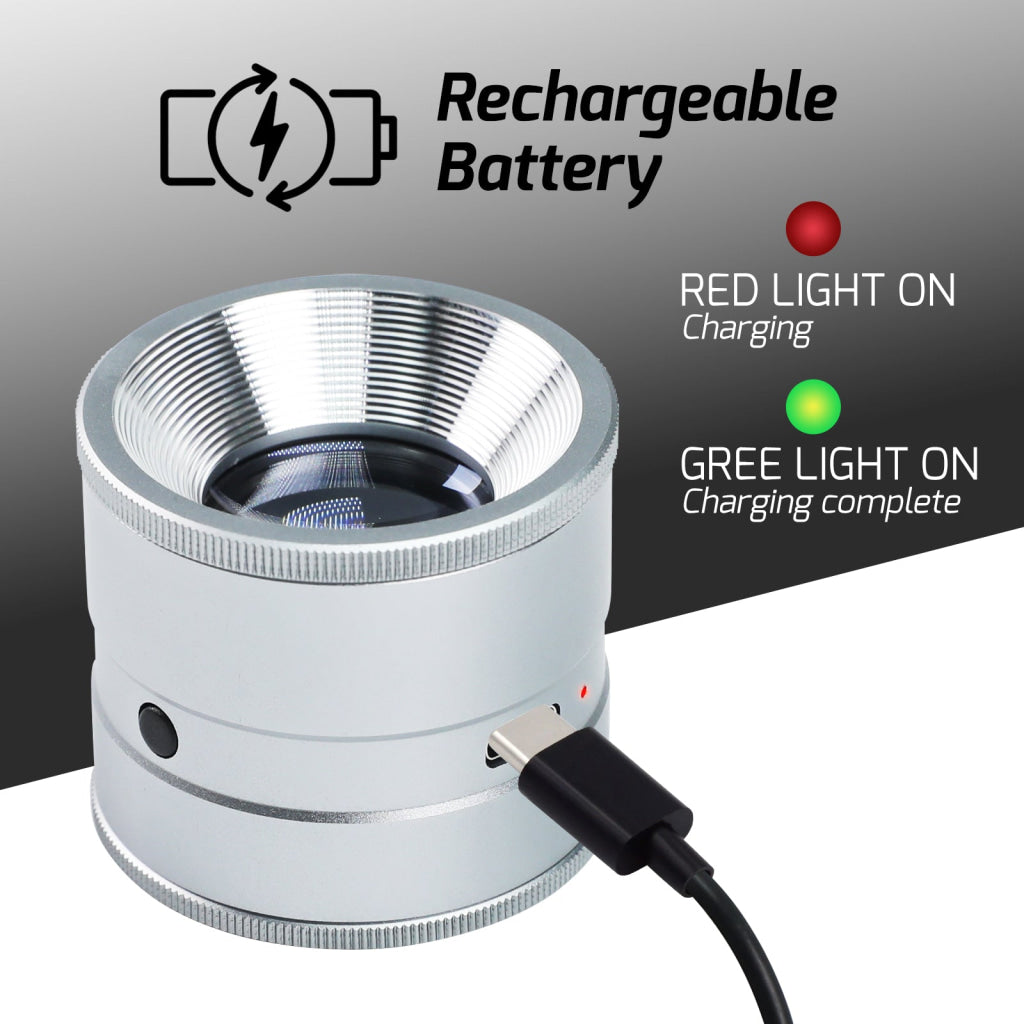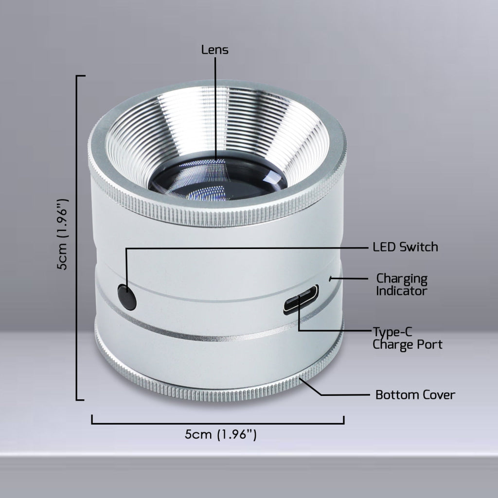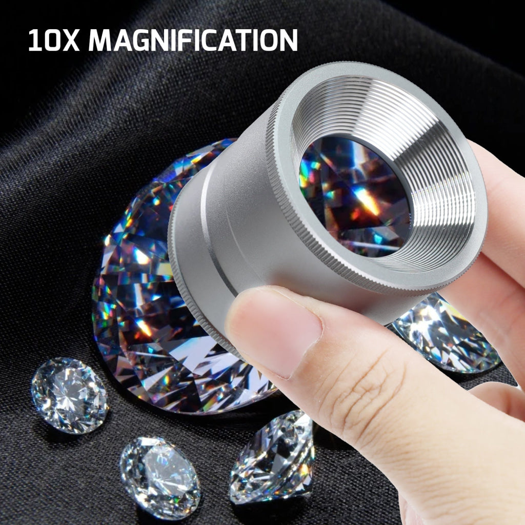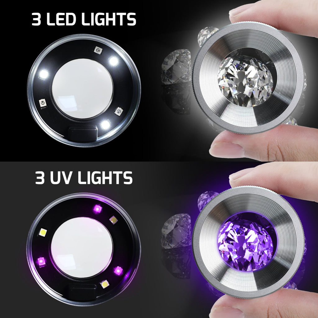 - GEM-522 10X Magnifying Scale Loupe White & Purple LED Lights Adjustable Focus Rechargeable Magnifier Glass Lens for Jewelers, Collectors, Hobbyists, and Professionals GEM-522 10X Magnifying Scale Loupe White & Purple LED Lights Adjustable Focus Rechargeable Magnifier Glass Lens for Jewelers, Collectors, Hobbyists, and Professionals