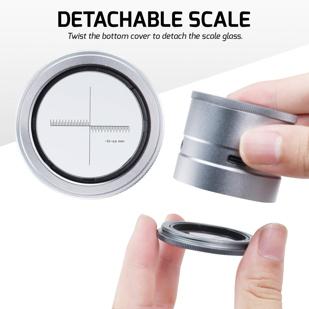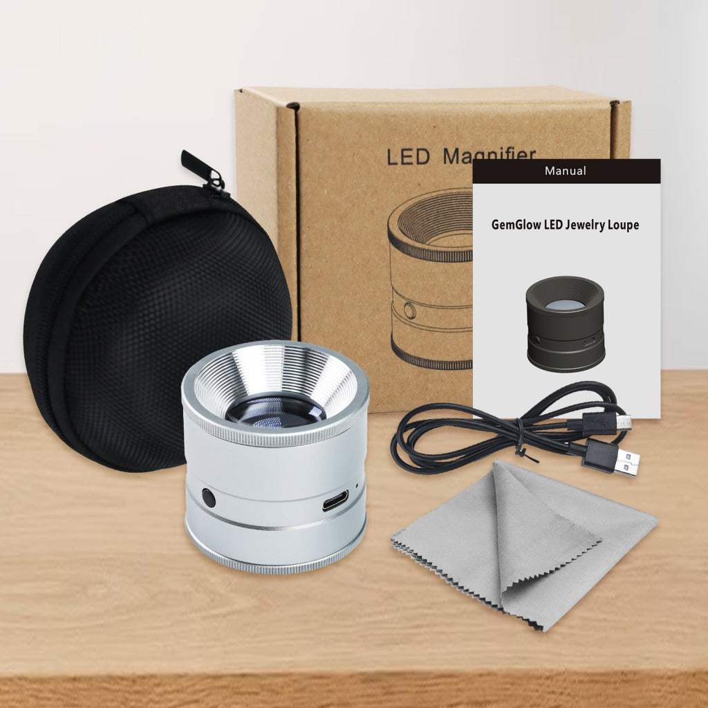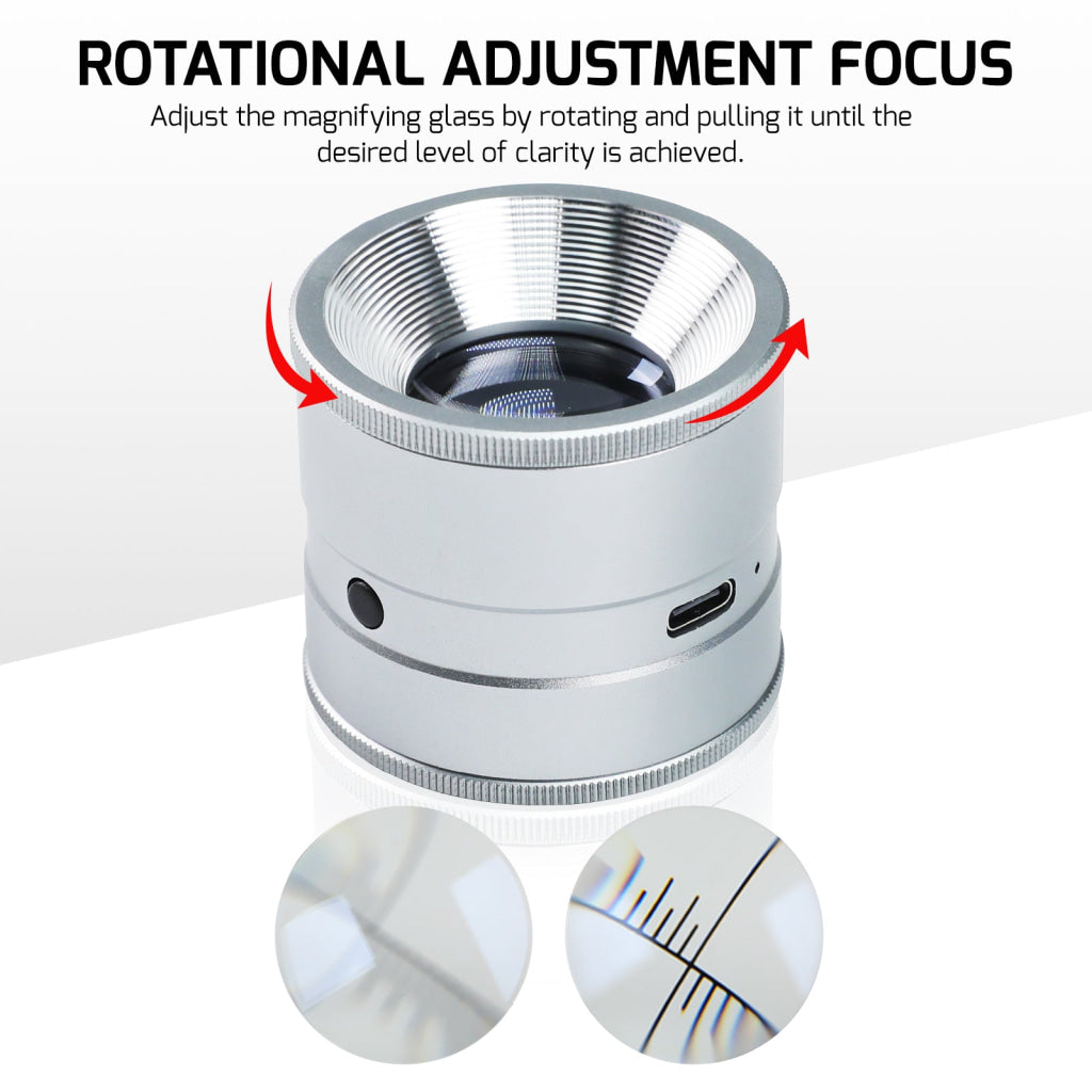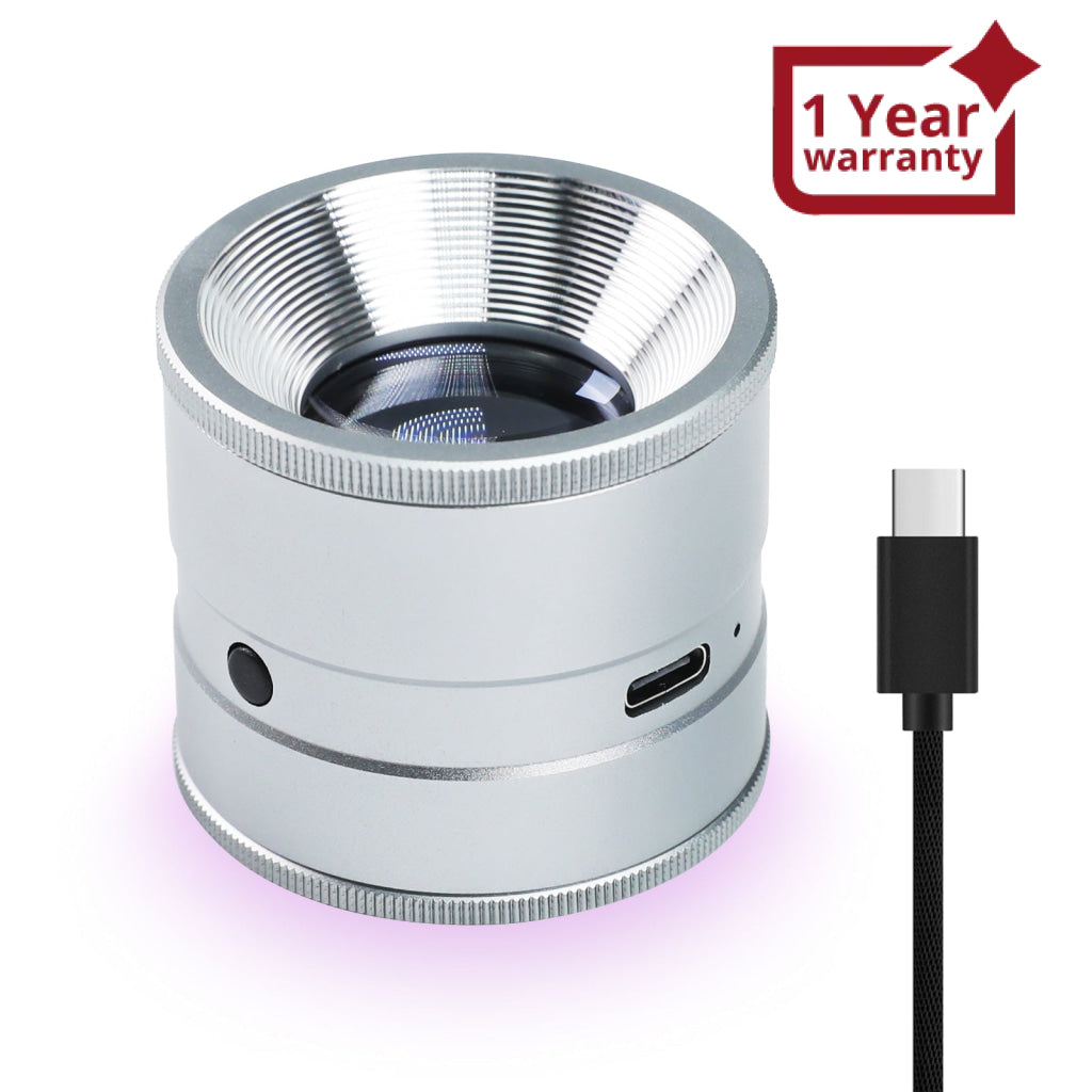 - GEM-522 10X Magnifying Scale Loupe White & Purple LED Lights Adjustable Focus Rechargeable Magnifier Glass Lens for Jewelers, Collectors, Hobbyists, and Professionals GEM-522 10X Magnifying Scale Loupe White & Purple LED Lights Adjustable Focus Rechargeable Magnifier Glass Lens for Jewelers, Collectors, Hobbyists, and Professionals