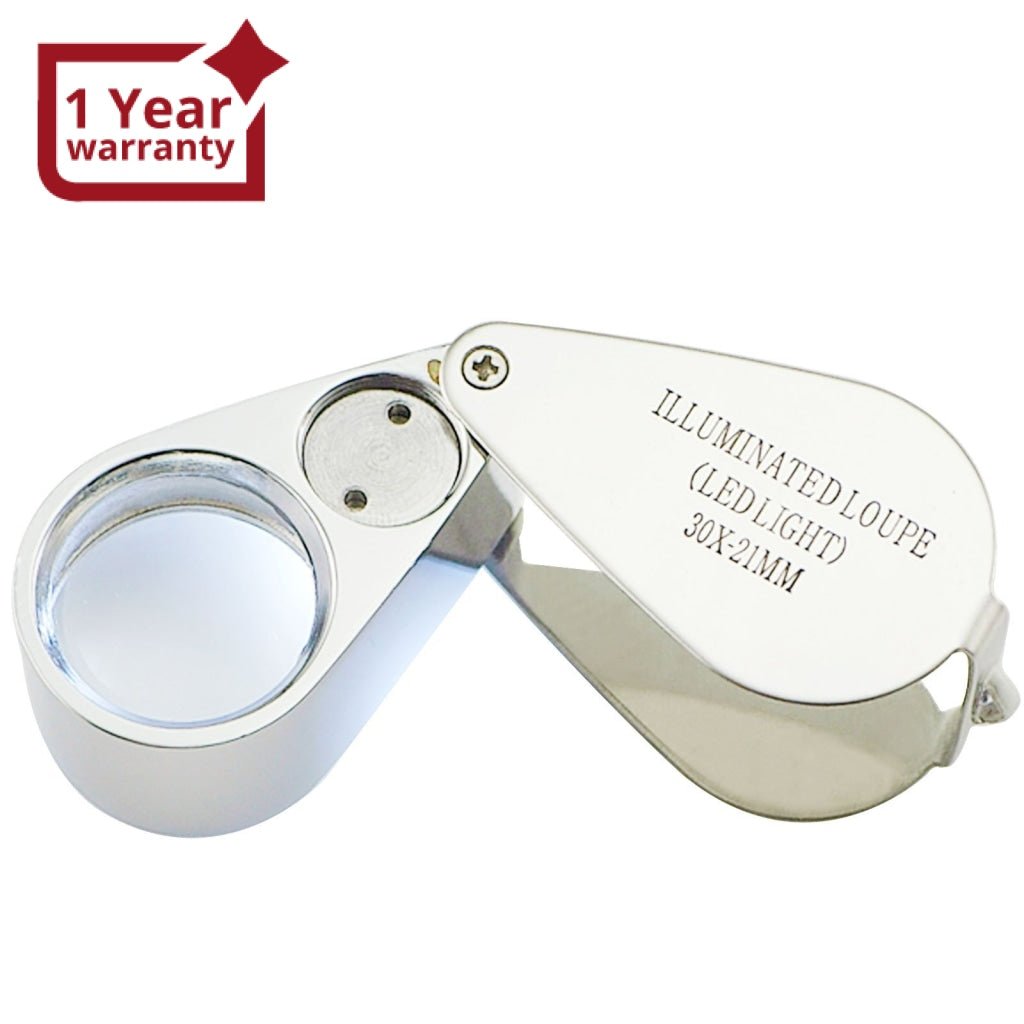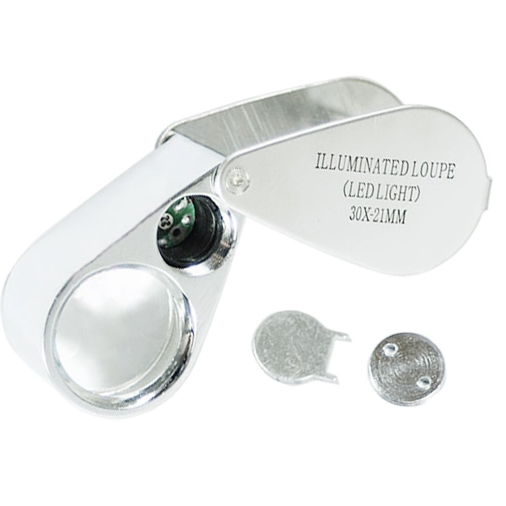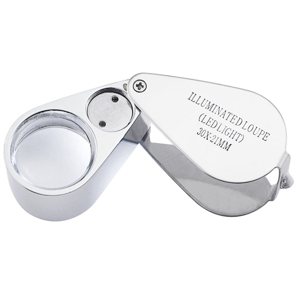 - GM-30XX Portable 30x Magnifying Optical Glass LED Light Jeweler Loupe GM-30XX Portable 30x Magnifying Optical Glass LED Light Jeweler Loupe