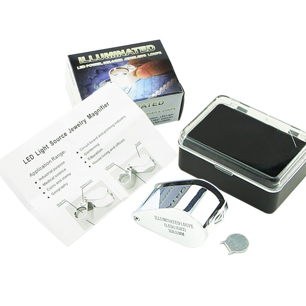 - 1 x Loupe with 30x Magnification and LED light