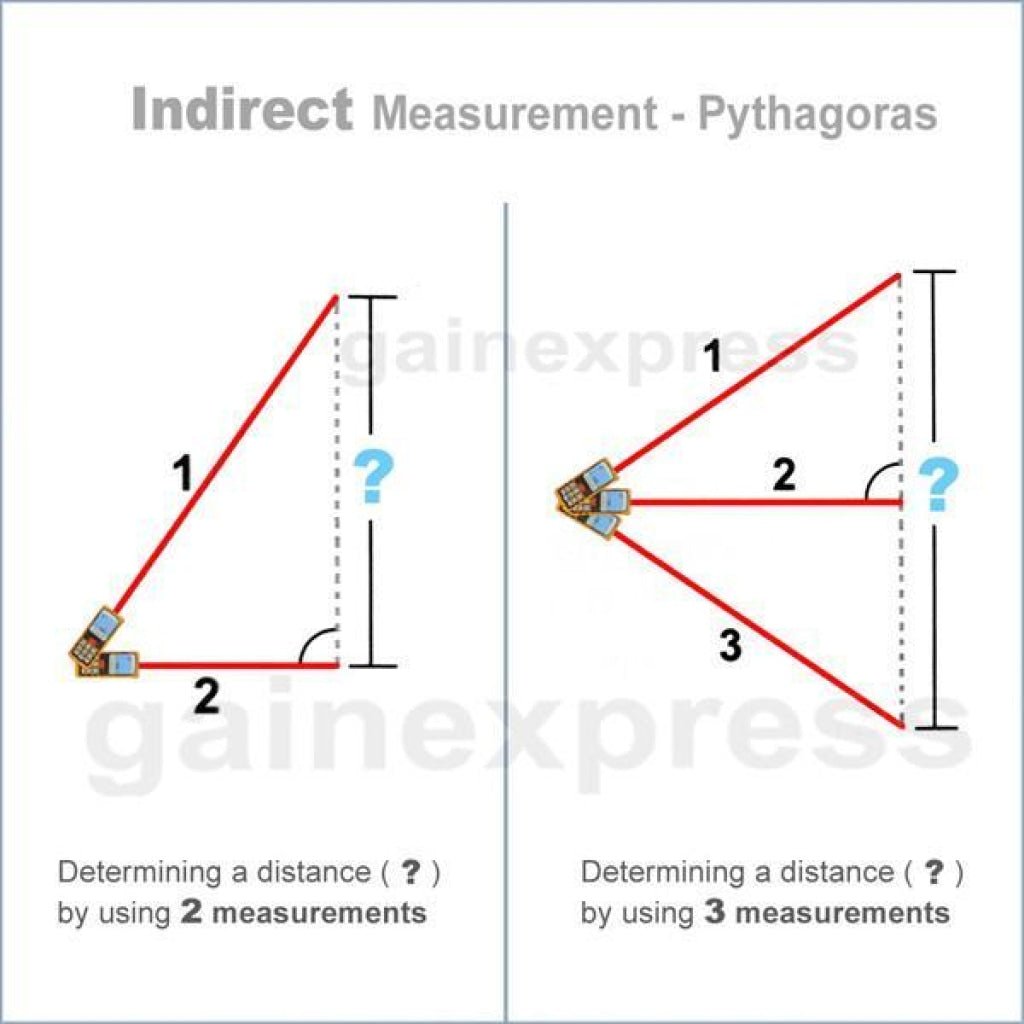 Professional Distance Meter with auto correction & error report technology uses laser technology designed to give special users a high accuracy, one person distance, area and volume measurement precisely in an instant and estimating tool to measure remote and difficult reaching places. It can make use of Pythagorean Theorem to measure distances or lengths indirectly when direct measurement is not feasible.