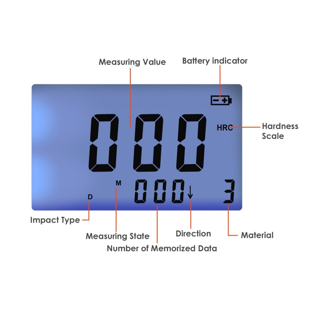 - Able to store 50 groups including single measured value, impact direction, material and hardness scale etc