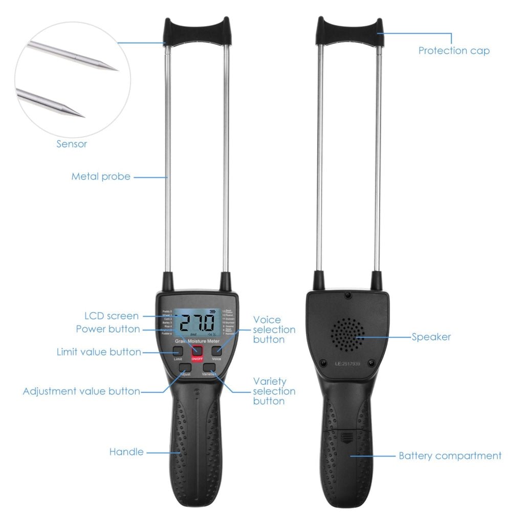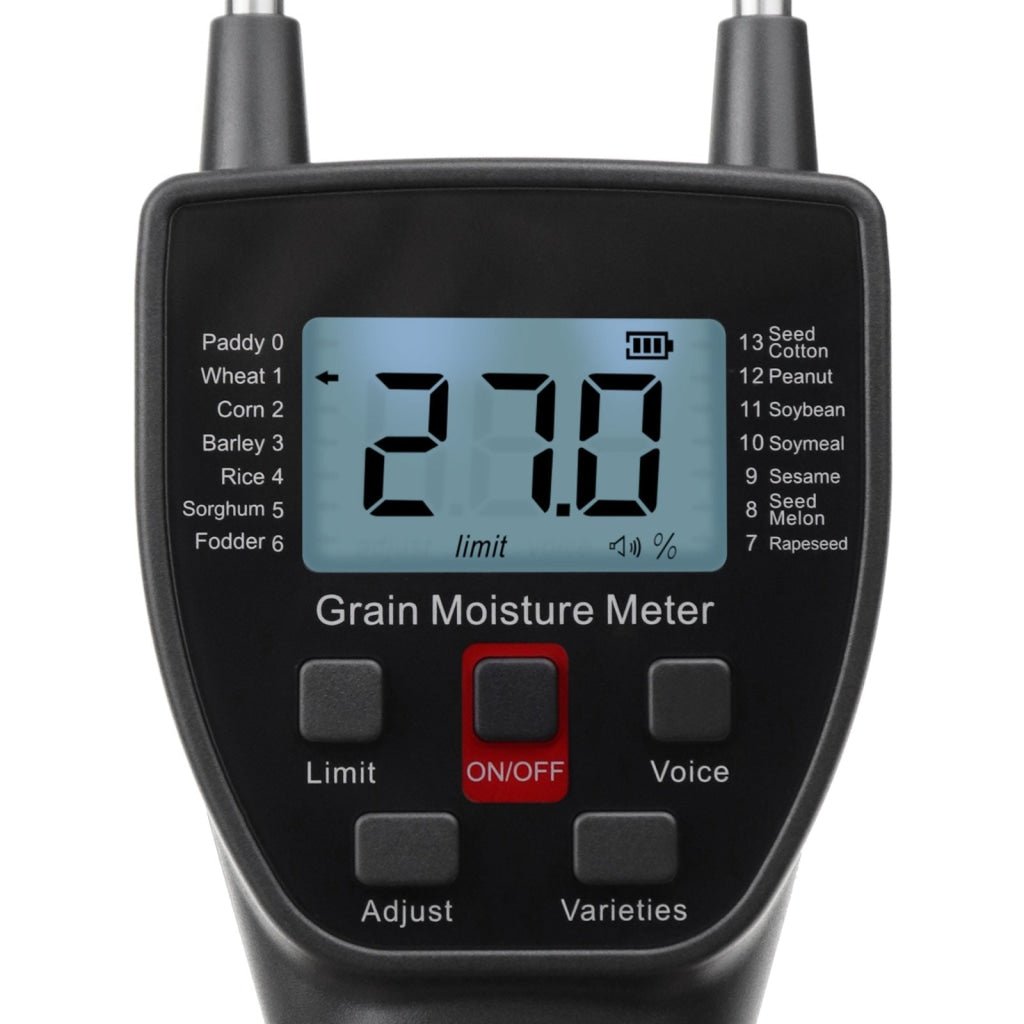 - HTM-350A Digital Grain Moisture Tester Moisture Meter Water Content Analyzer with 300mm (11.8") Metal Probe for 14 Grains Wheat Corn Rice Peanut Soybean HTM-350A Digital Grain Moisture Tester Moisture Meter Water Content Analyzer with 300mm (11.8") Metal Probe for 14 Grains Wheat Corn Rice Peanut Soybean