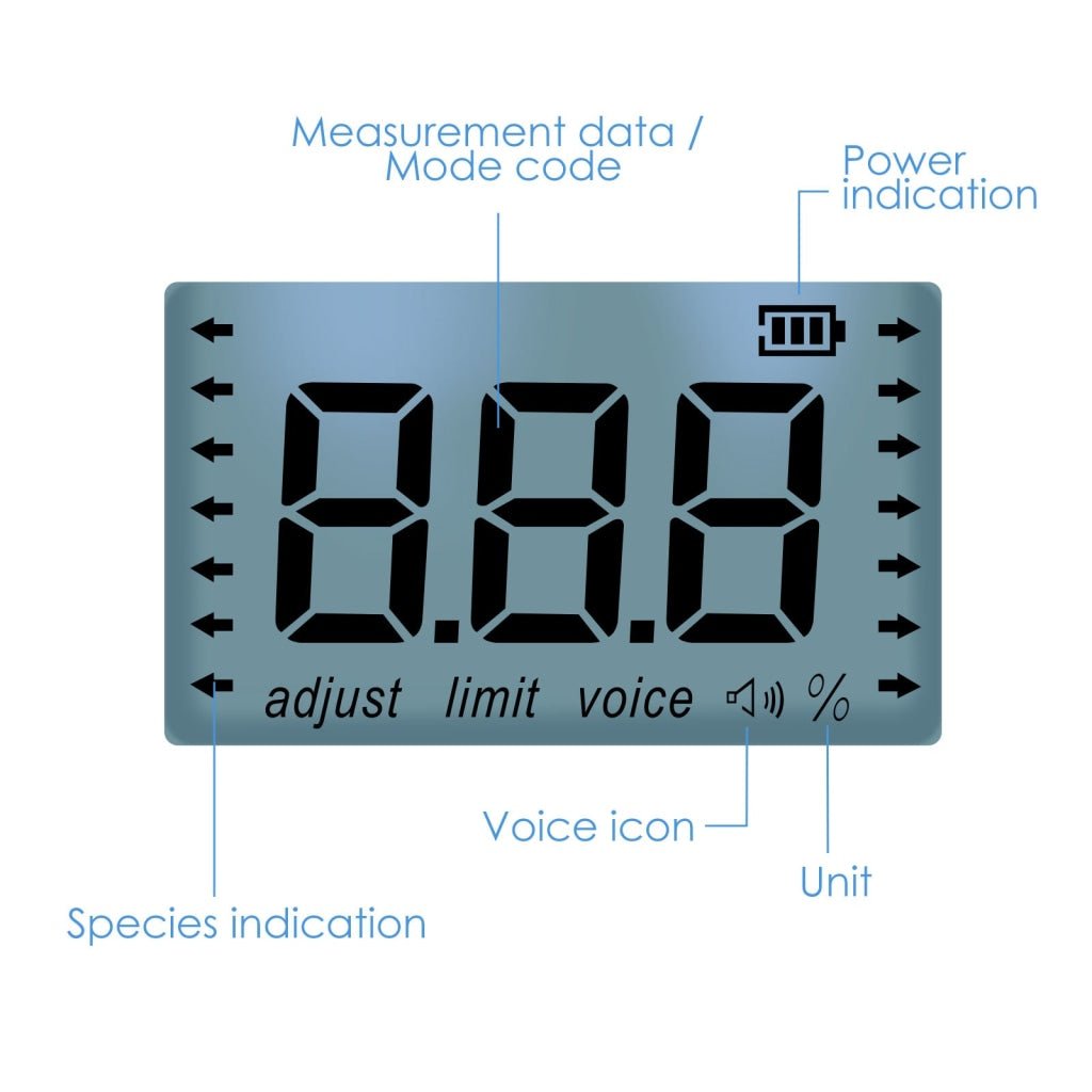 - 14 varieties of grain moisture testing (Paddy, Wheat, Corn, Barley, Rice, Sorghum, Fodder, Rapeseed, Melon seed, Sesame, Soy meal, Soybean, Peanut, Cotton seed)