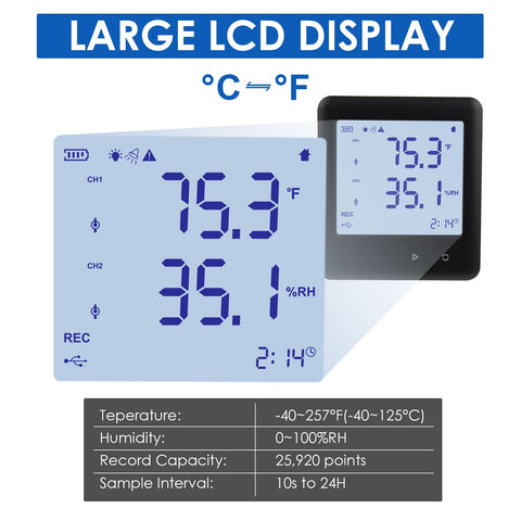 HTM-352 Data Logger Thermo-hygrometer Thermometer Temperature and Humidity Datalogging Measurement 25,920 Groups of Reading High Low Alarm with PC Software and Calendar Display