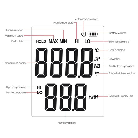 Digital Humidity and Temperature Meter Data Hold MAX/MIN/DIFF Value Measurement with LCD Backlight