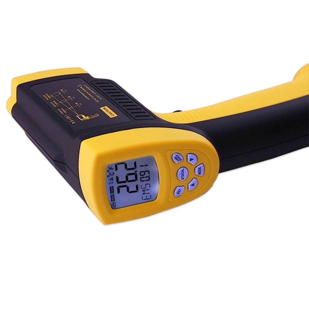 This high quality Digital IR thermometer can safely measure surface of hot, hazardous or hard to reach objects without having to touch them. Just aim with Laser Point and read the temperature in less than a second.